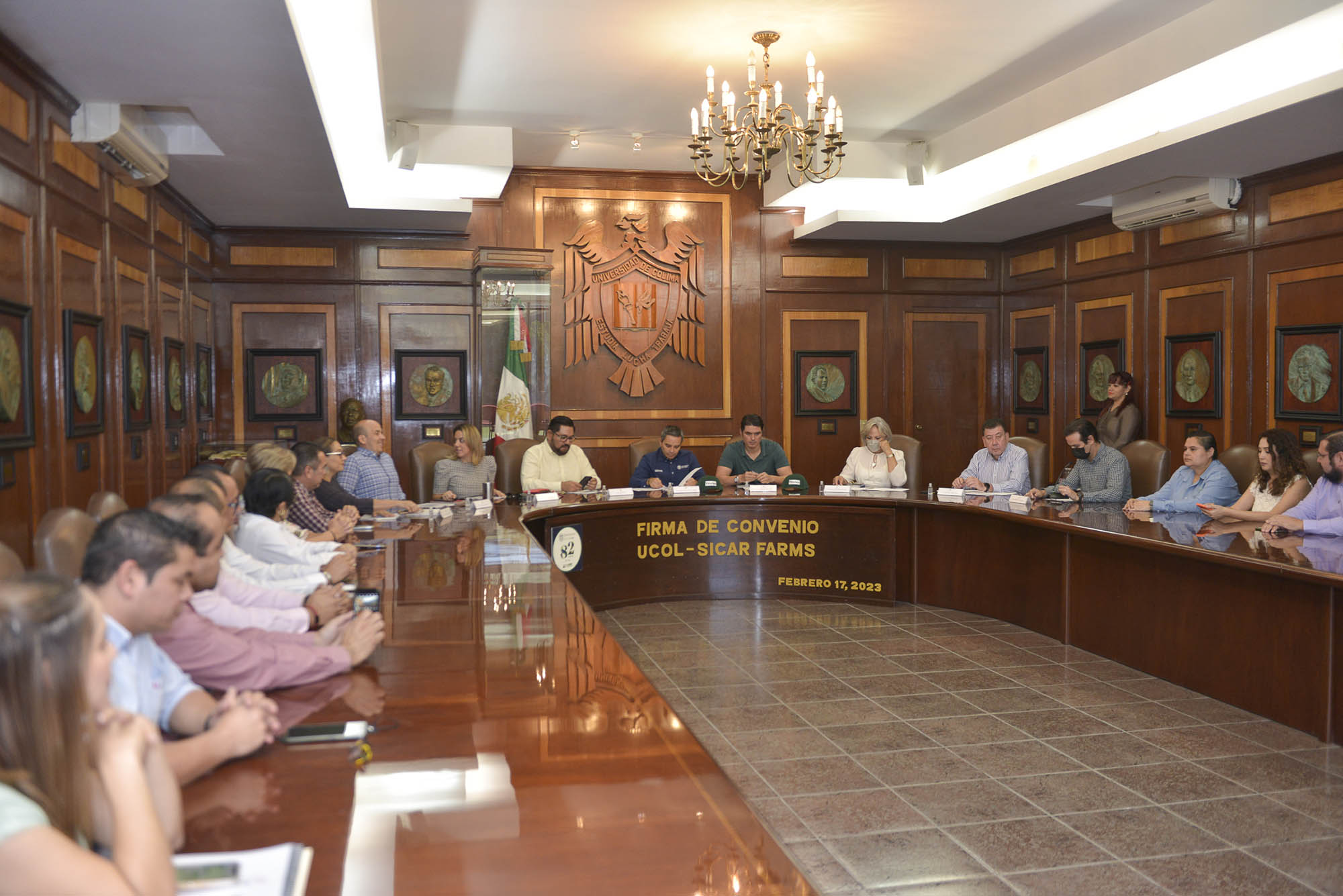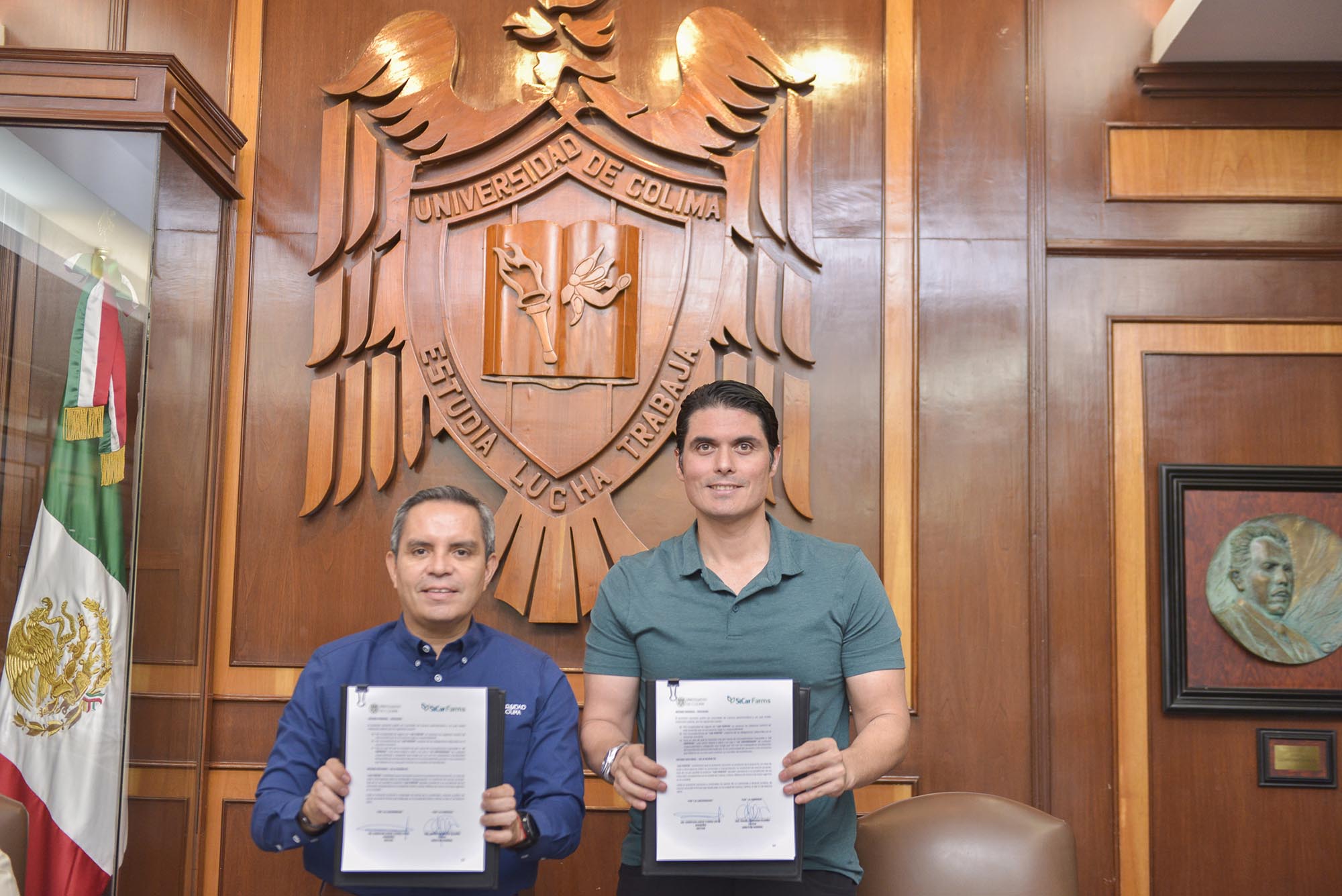 Por parte de la Universidad de Colima firmó el rector, Christian Jorge Torres Ortiz Zermeño y por parte de la empresa Sicar Farms su director general, el ingeniero Daniel Gudiño Ochoa.