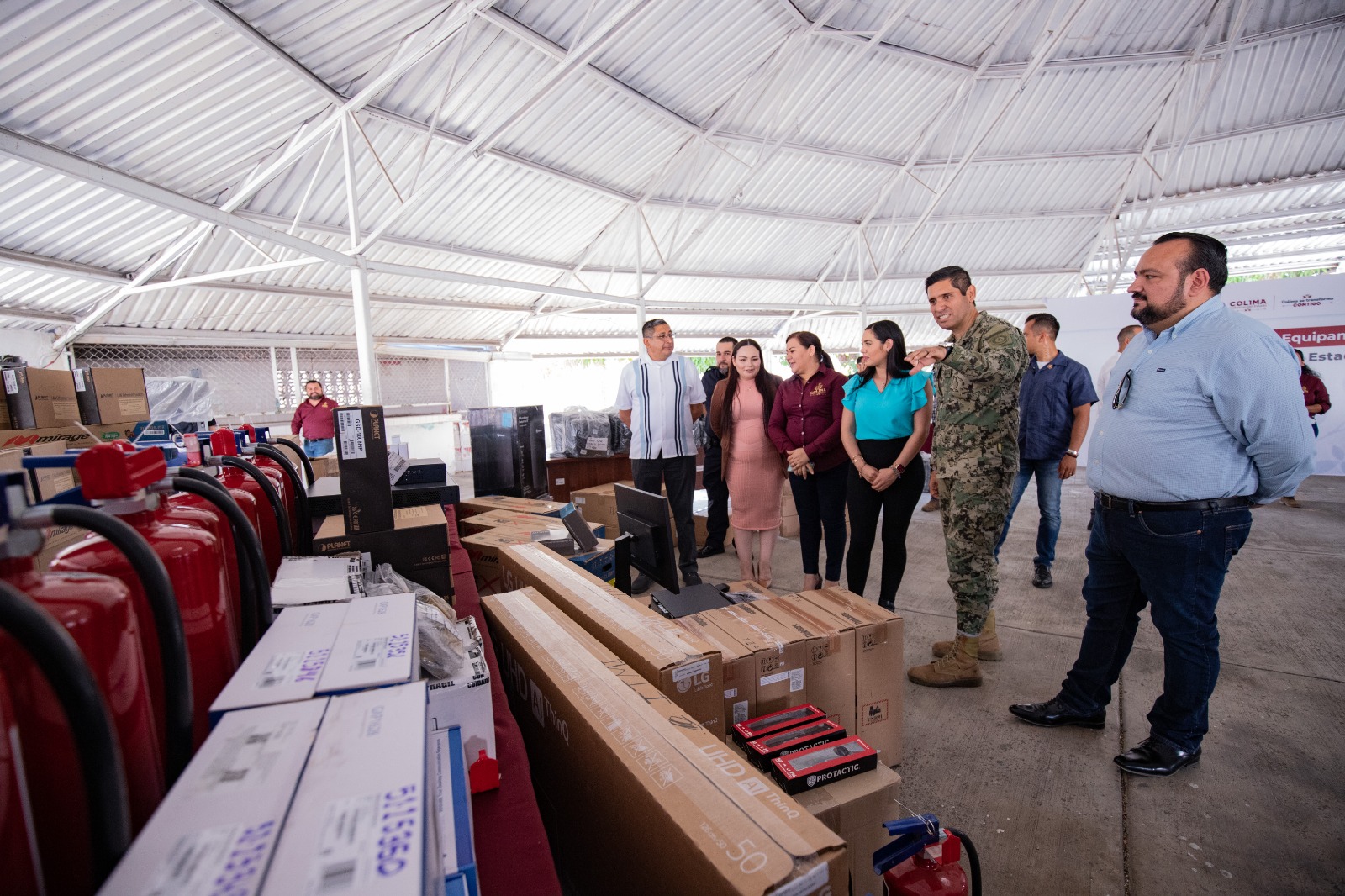 La mandataria estuvo acompañada de Ma Guadalupe Solís Ramírez, secretaria general de Gobierno; Héctor Alfredo Castillo Báez, secretario de Seguridad Pública; Aída Pamela Caldera Caldera, secretaria ejecutiva del Sistema Estatal de Seguridad Pública; Giovanni Israel Silva Galván, director del Centro de Reinserción Social Colima; así como Carlos Ramsés Navarrete Zamora, director del Instituto Especializado en la Ejecución de Medidas para Adolescentes.