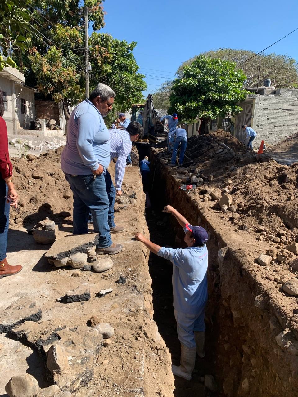 En los trabajos de sustitución, estuvieron presentes los regidores de Villa de Álvarez, Lupita Velasco y Betón Rolón, la Arq. Paola Corona, Coordinadora Operativa, el Ing. José Manuel Dueñas, Director de Redes de Drenaje; el encargado de la brigada de drenajes Miguel Fabián; trabajadores de las brigadas y Vladimir Parra, director de CIAPACOV.