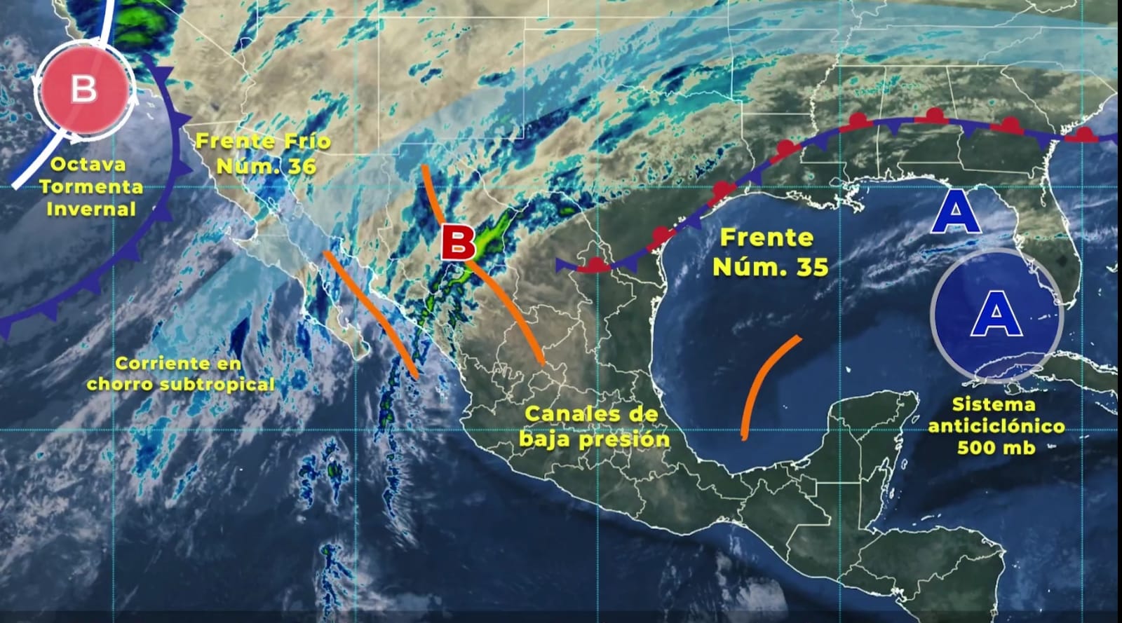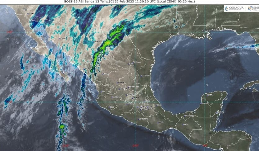 En contraparte, el SMN pronostica que las temperaturas mínimas para hoy en nuestro país descenderían de -10 a -5 grados Celsius con heladas en zonas serranas de Baja California, Sonora, Chihuahua y Durango; de -5 a 0 °C en Zacatecas, Estado de México y Puebla.