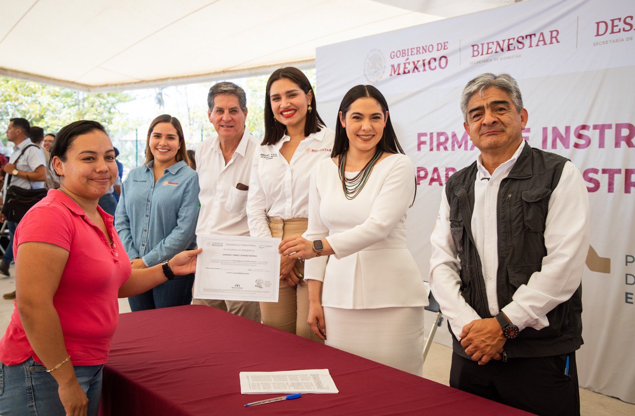 La gobernadora Indira Vizcaíno Silva y el director general de la Comisión Nacional de Vivienda (Conavi), Juan Javier Granados Barrón, atestiguaron la firma de convenios del Programa de Vivienda Social Sismo 2022, en el Parque Metropolitano de Tecomán, para 295 familias afectadas con pérdida total en sus viviendas por el sismo magnitud 7.7 en Colima el pasado 19 de septiembre; “es una esperanza de cómo podemos cambiar nuestro estado y nuestro país, cuando entre todas y todos hacemos lo que nos toca”.