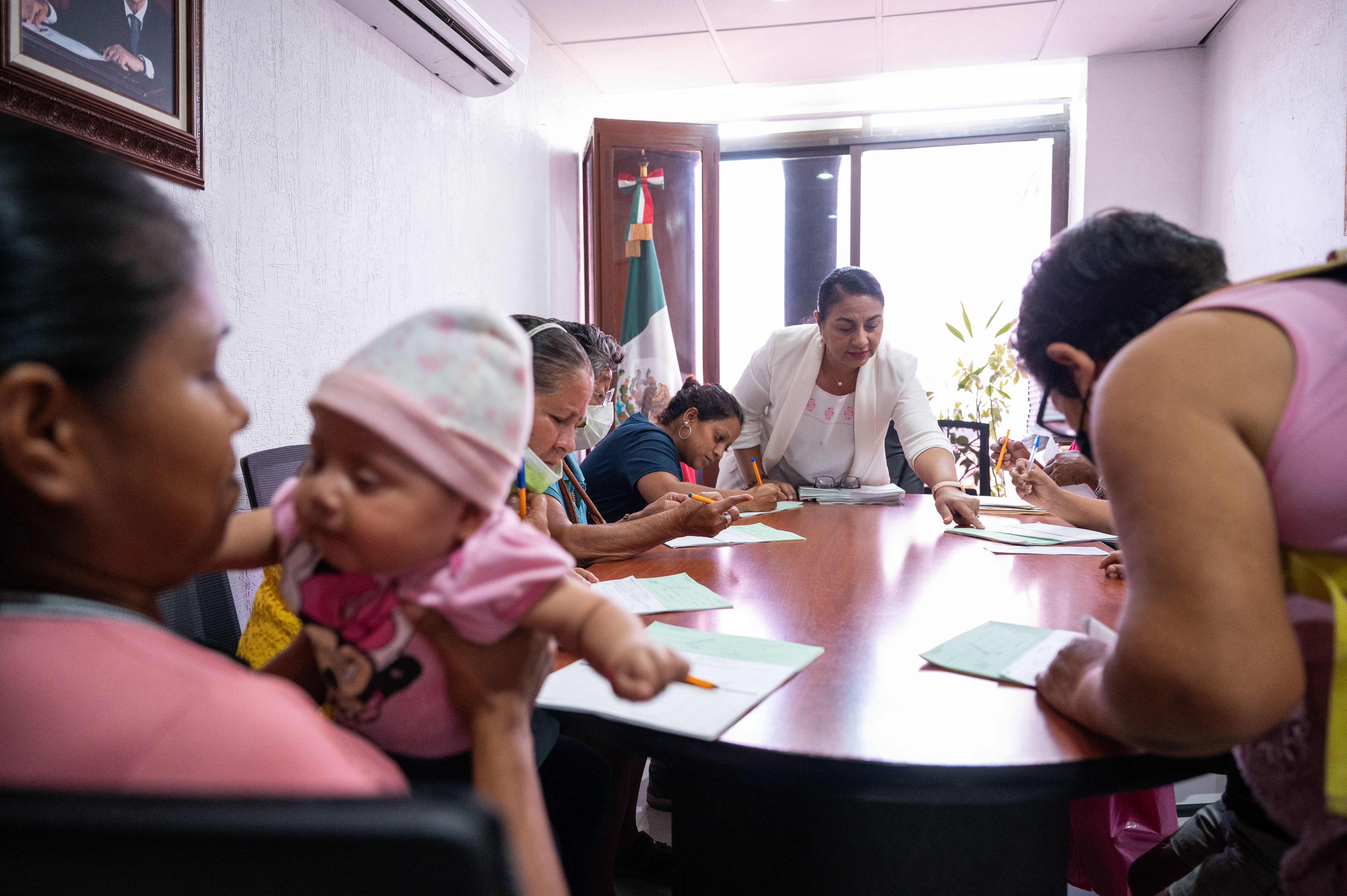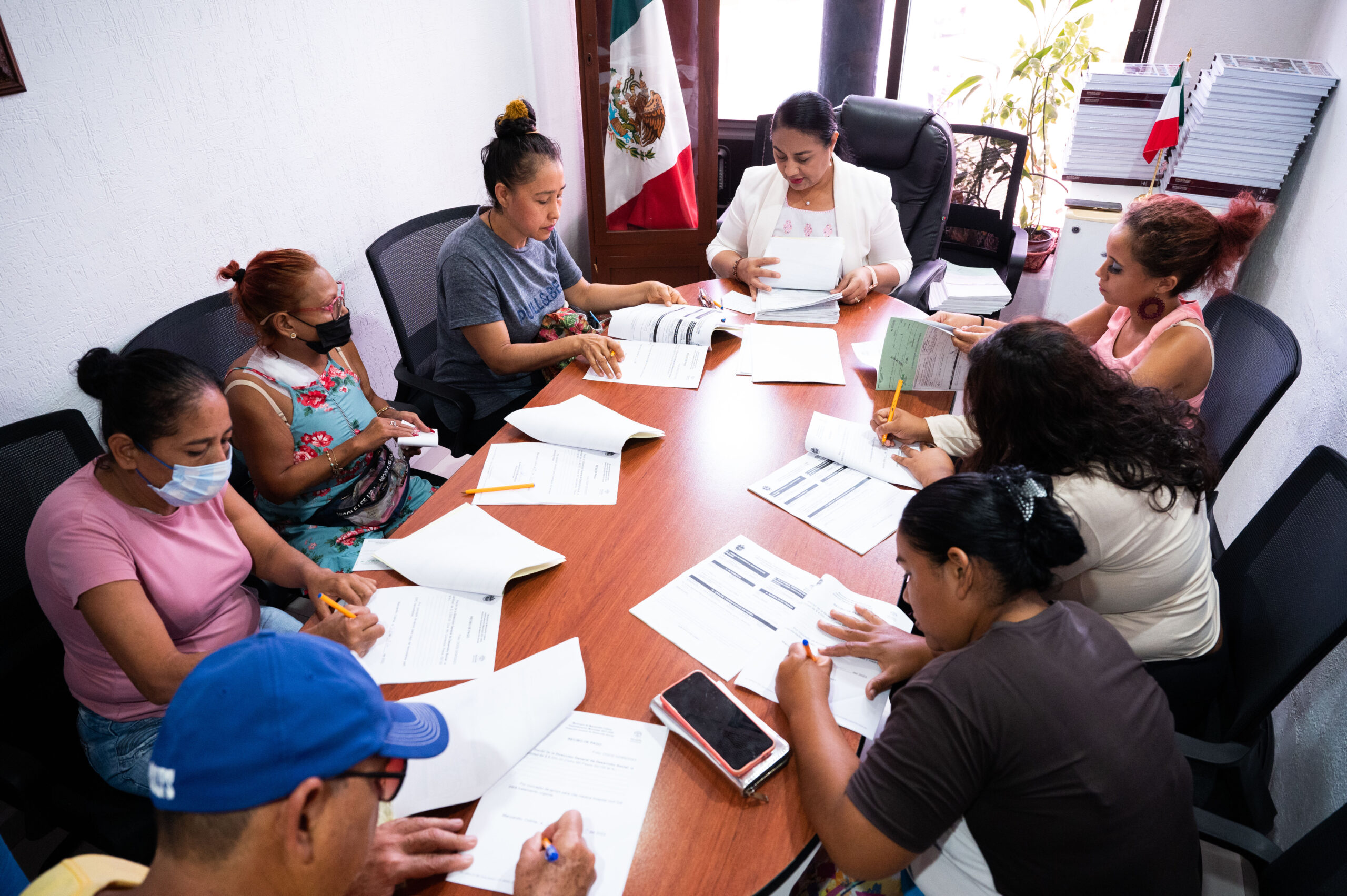 Con recursos de la dirección de Desarrollo Social y como ya es una costumbre, la alcaldesa recibió a las personas en la sala de juntas para hacer el llenado de la documentación que se requiere para validar la entrega de la ayuda a través del Programa de Apoyo a Grupos Vulnerables.