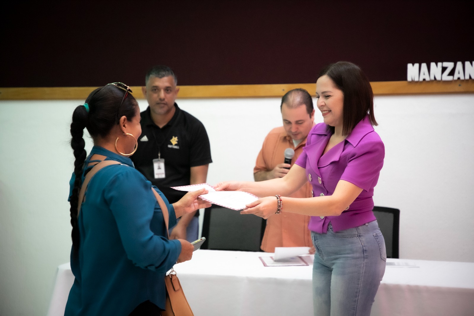 La secretaria del Ayuntamiento de Manzanillo, Martha Zepeda del Toro, junto con el oficial del Registro Civil, Arturo Fabián Galván Virrueta, fueron los encargados de hacer las entregas correspondientes.
