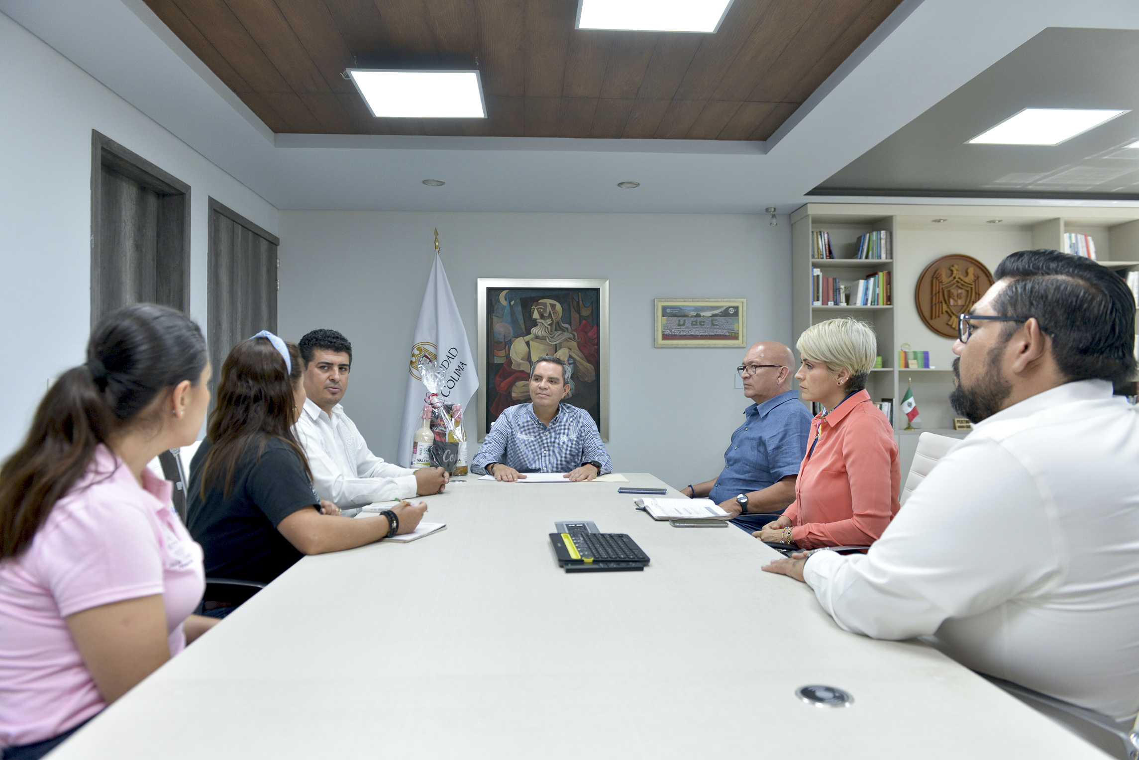 Felipe de Jesús Michel Santana, alcalde del municipio de Comala, acompañado por funcionarios de ese ayuntamiento, visitó al rector de la Universidad de Colima, Christian Jorge Torres Ortiz Zermeño para invitarlo a la Feria del Ponche, Pan y Café, que se realizará a partir del 31 de marzo y solicitarle la participación de grupos artísticos universitarios para que puedan ser incluidos en el programa de presentaciones culturales.