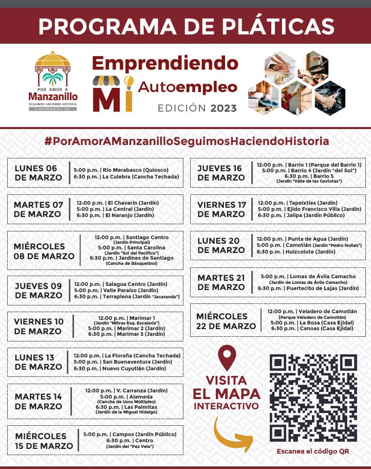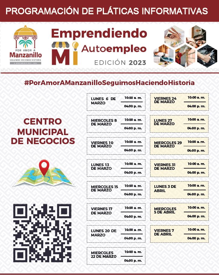 Es importante destacar que personal del municipio acudirá a las comunidades rurales a dar pláticas informativas para que las personas puedan participar, así como para las familias que viven en la zona urbana del municipio se les invita a las pláticas que se darán en el Centro Municipal de Negocios, ubicado en Octavio Paz No.2, Col. Salagua, en un horario de 9 de la mañana a 4 de la tarde; o a los teléfonos 314 138 2644 y 314 138 2540 y pueden vincularse al correo electrónico: [email protected].