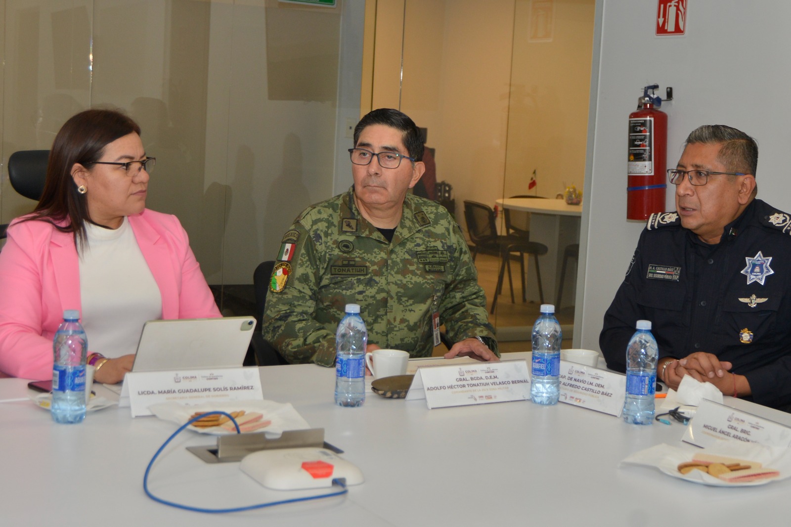 La titular de la Secretaría General de Gobierno (SGG), Ma. Guadalupe Solís Ramírez, encabezó este viernes la reunión extraordinaria de la Mesa de Coordinación Estatal para la Construcción de la Paz y la Seguridad en Colima.