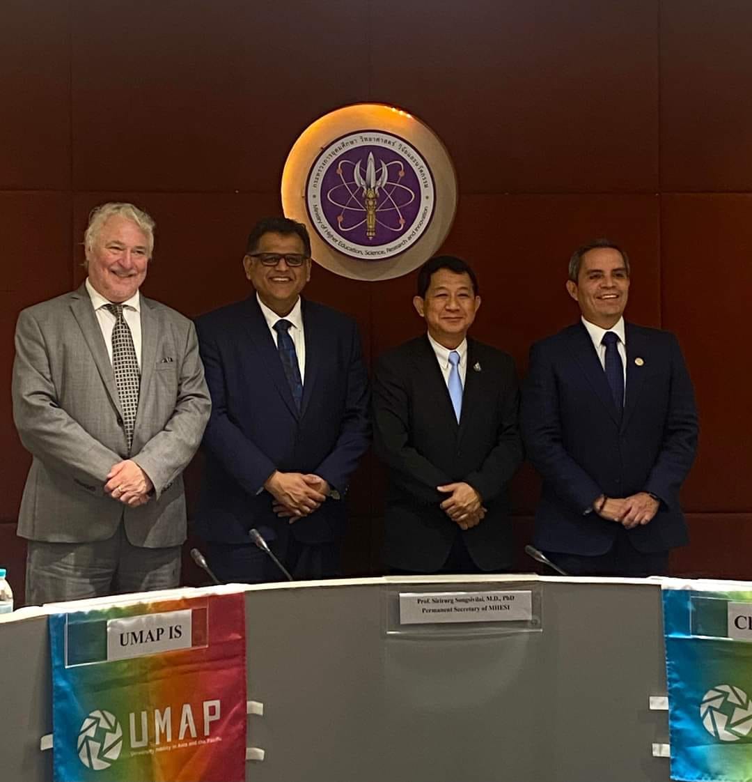 Christian Torres Ortiz Zermeño, Rector de la Universidad de Colima, realizó una gira de trabajo en Tailandia como presidente de UMAP (University Mobility for Asia and the Pacific); presentó el plan de trabajo en la primera reunión del Consejo Directivo 2023, realizada en instalaciones del Ministerio de Educación Superior, Ciencia, Investigación e Innovación, con sede en Bangkok, Tailandia; además, visitaron dos Universidades Tailandesas.