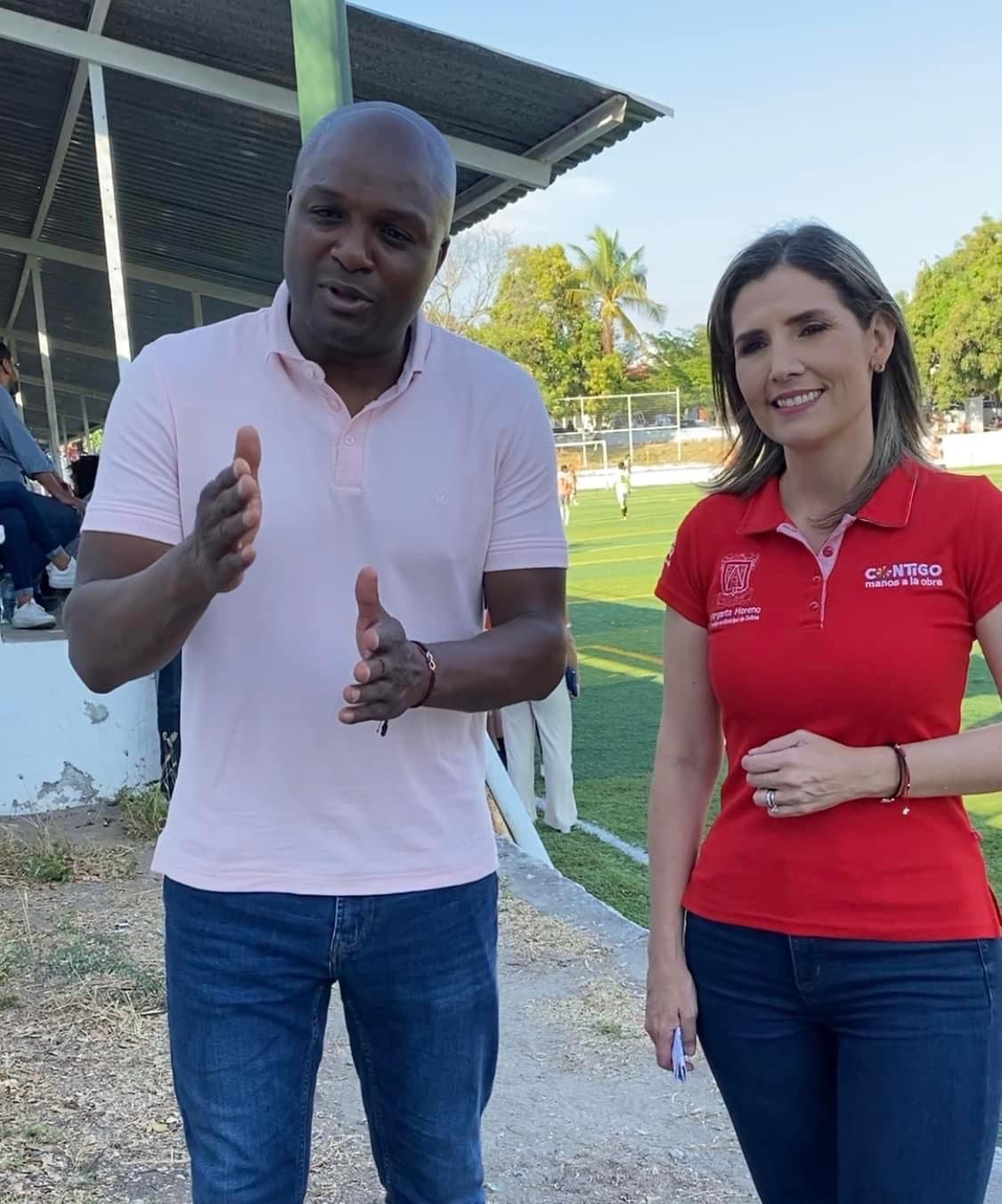 + Margarita Moreno y Aquivaldo Mosquera, director técnico de Alebrijes de Oaxaca FC, hacen equipo para ofrecer alternativas de crecimiento a deportistas de Colima.
