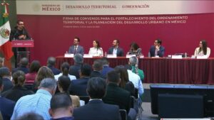 En la firma de convenios estuvieron el titular de la Sedatu, Román Meyer Falcón; representantes de los Poderes Ejecutivo y Legislativo, así como los 123 presidentes y presidentas municipales beneficiados a nivel nacional.