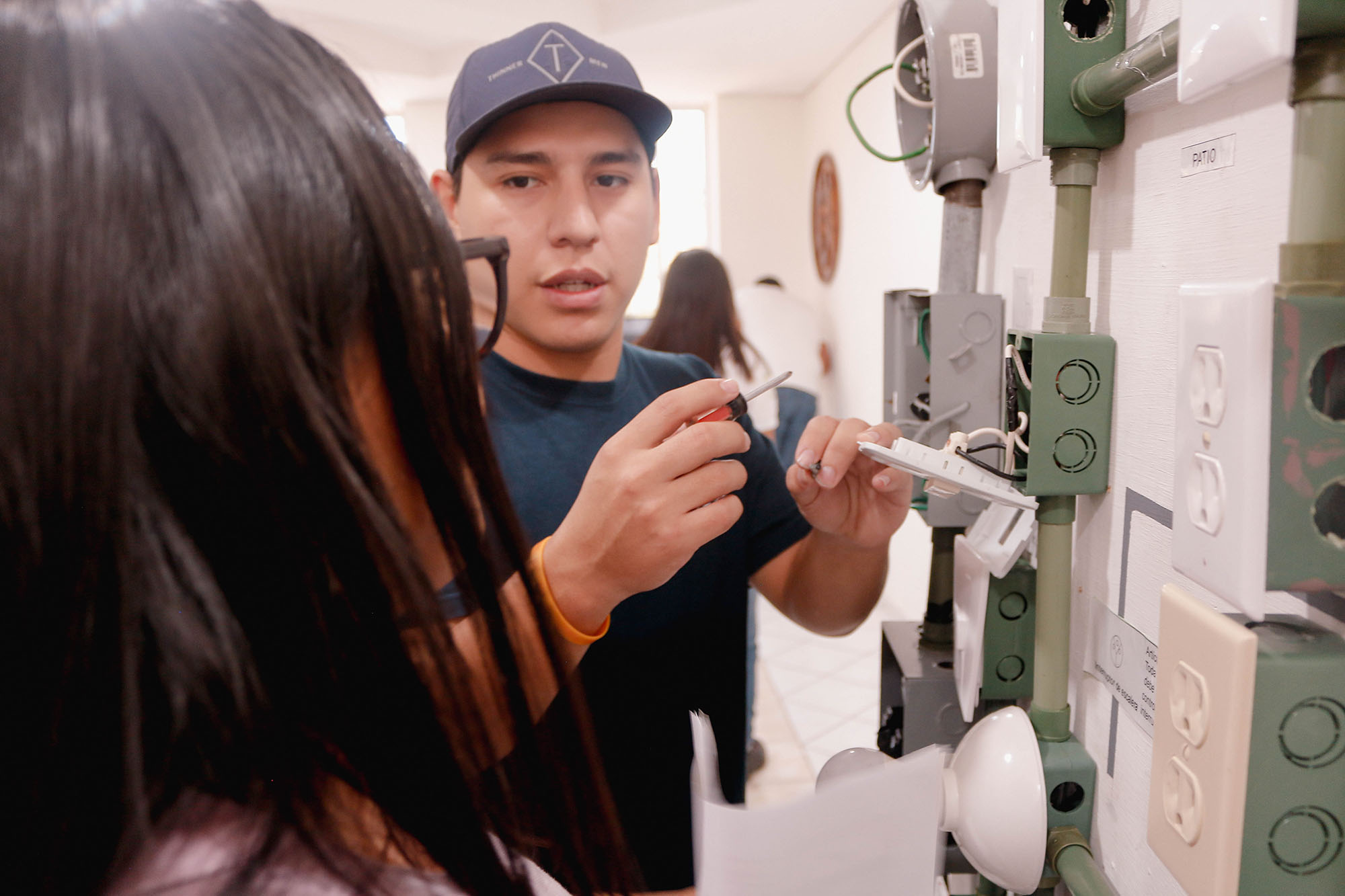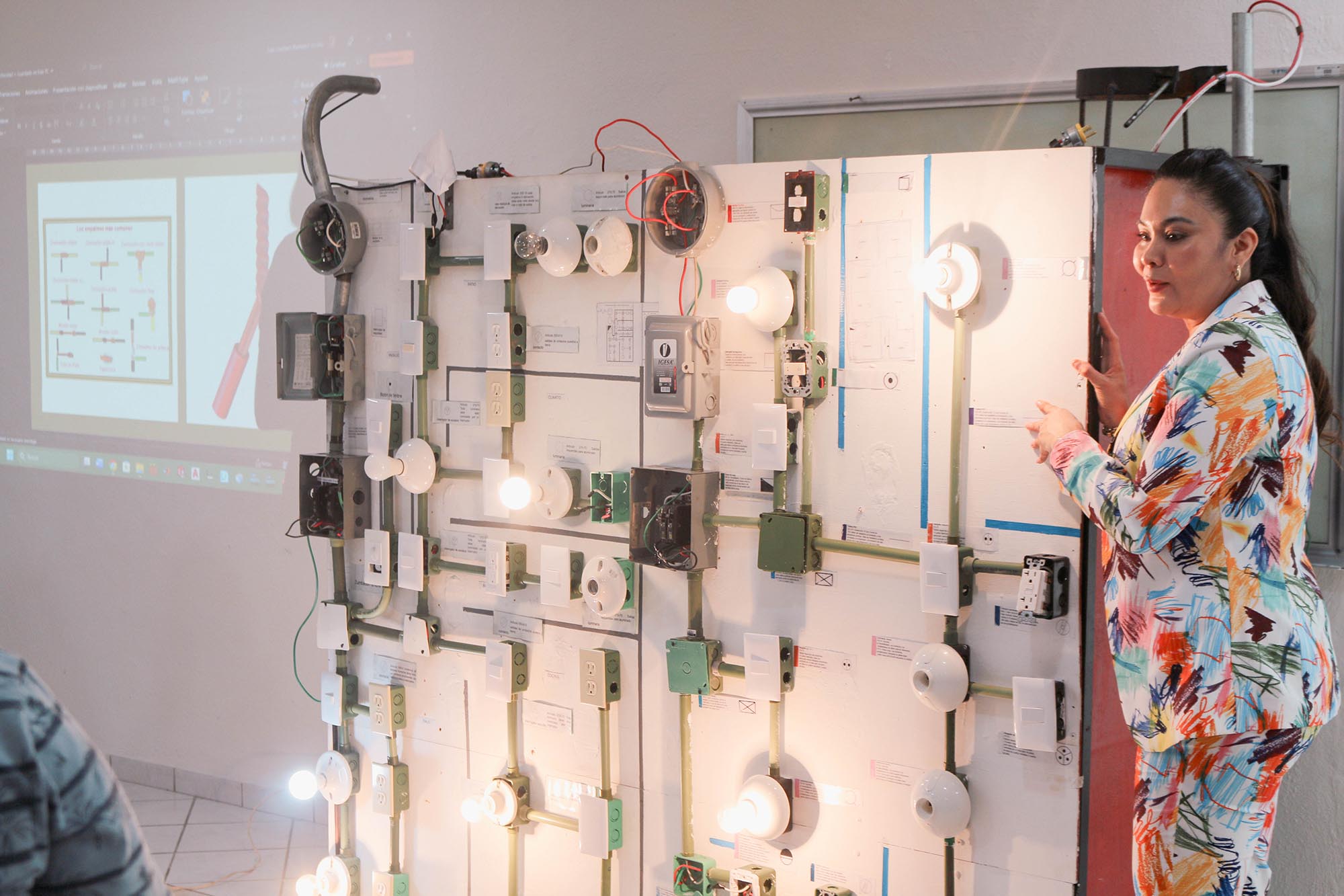 Además, realizaron una práctica sobre cómo hacer extensiones eléctricas, aprendieron sobre contactos, apagadores e interruptores, bajo la guía de alumnos del sexto semestre: David Rivera, Hugo Velazco, Ángel Ruiz, Gustavo Ursino y Axel Roldán, y la alumna de cuarto semestre, Inna Alonso.