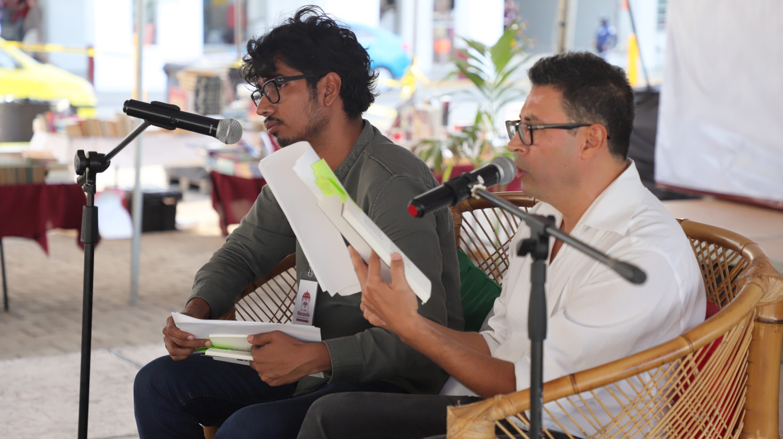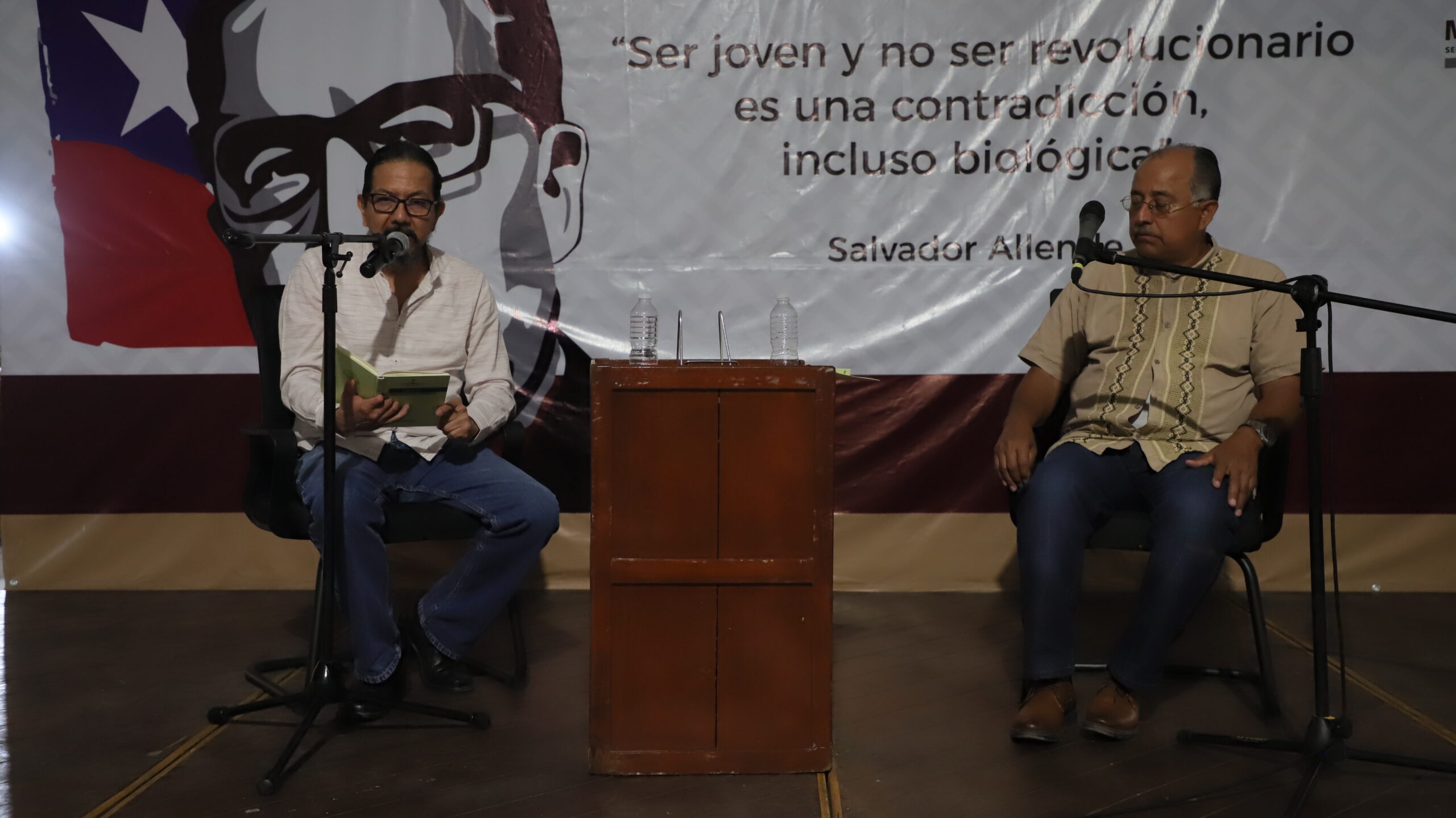 En otro día más de letras y lo que éstas pueden representar con toda la fuerza de su integración, los escritores y poetas Jorge Vargas y César Anguiano, participaron con la lectura de diversos poemas, creaciones literarias que incluso les da voz a esas personas que en silencio han sufrido y sufren de la desaparición o asesinato de algún familiar, derivado después de la lucha contra el narco, que “según”, en su tiempo, el expresidente Felipe Calderón impulsó, “dichosos los ciegos que se niegan a ver la verdad del mundo”, se auto citaba César Anguiano.