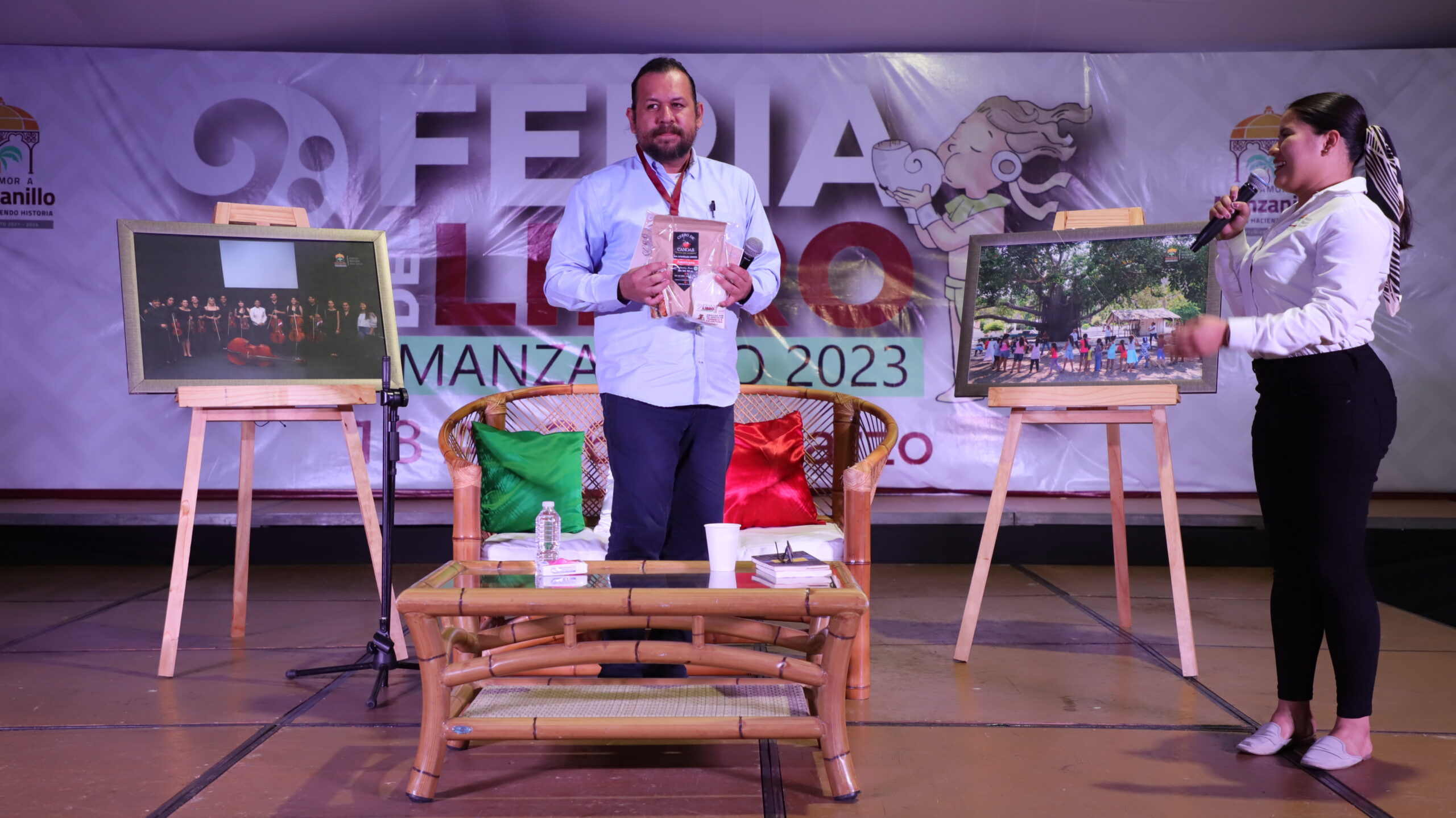Los tres foros que integran la Feria de Libro Manzanillo 2023 lucieron arropados por el gusto de la gente. Desde temprano por la mañana, Elías H. presentó el cuentacuentos Kamishibai “Leyendas viajeras inspirado en el Popol Vuh y la cosmogonía prehispánica”, evento al que asistieron y disfrutaron alumnos de 3 escuelas primarias del turno matutino; Primero de junio, Benito Juárez y la Padre Hidalgo, a quienes les fue presentado de una forma muy peculiar y hasta fantástica, este libro sagrado de los Mayas.