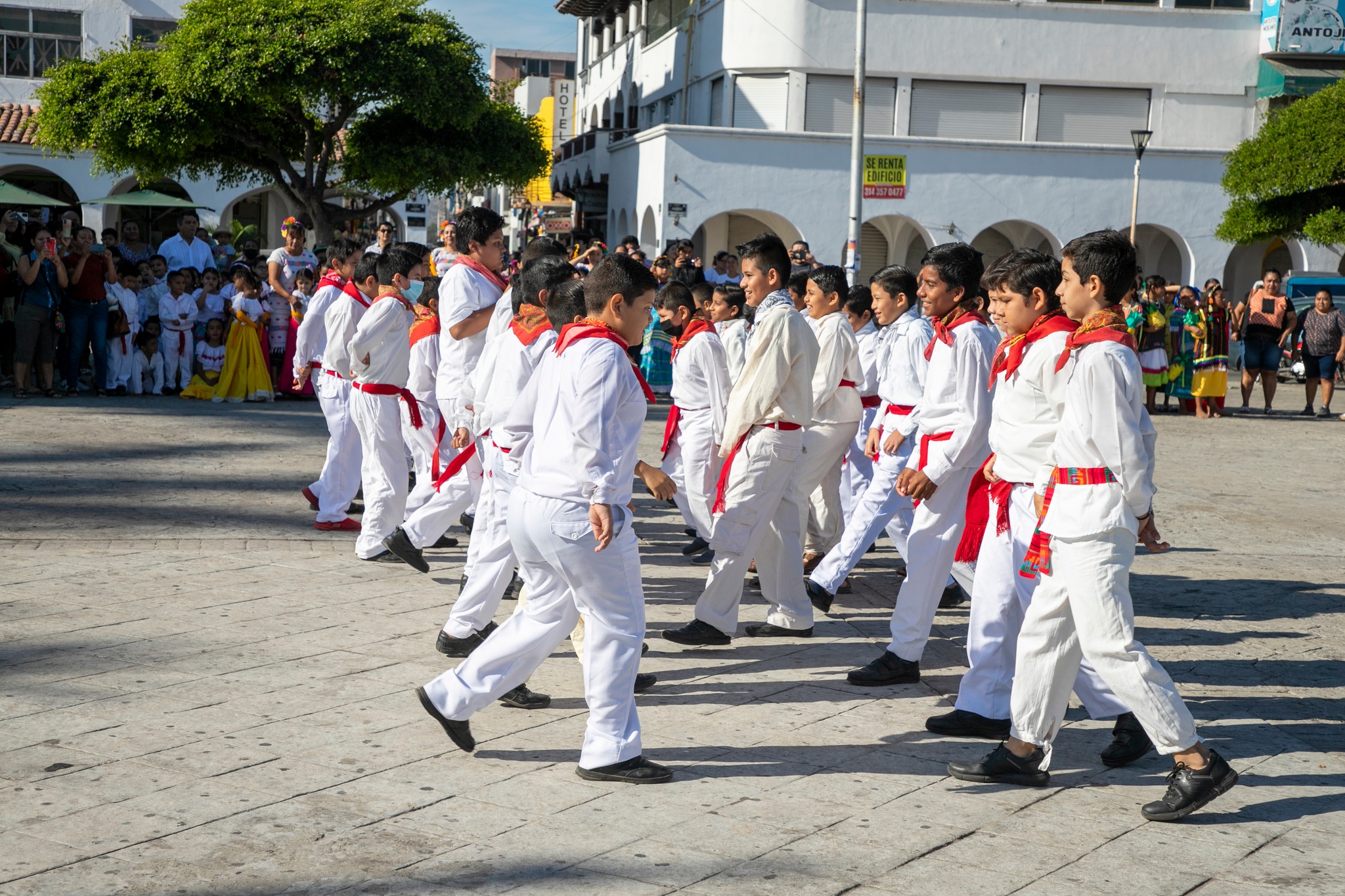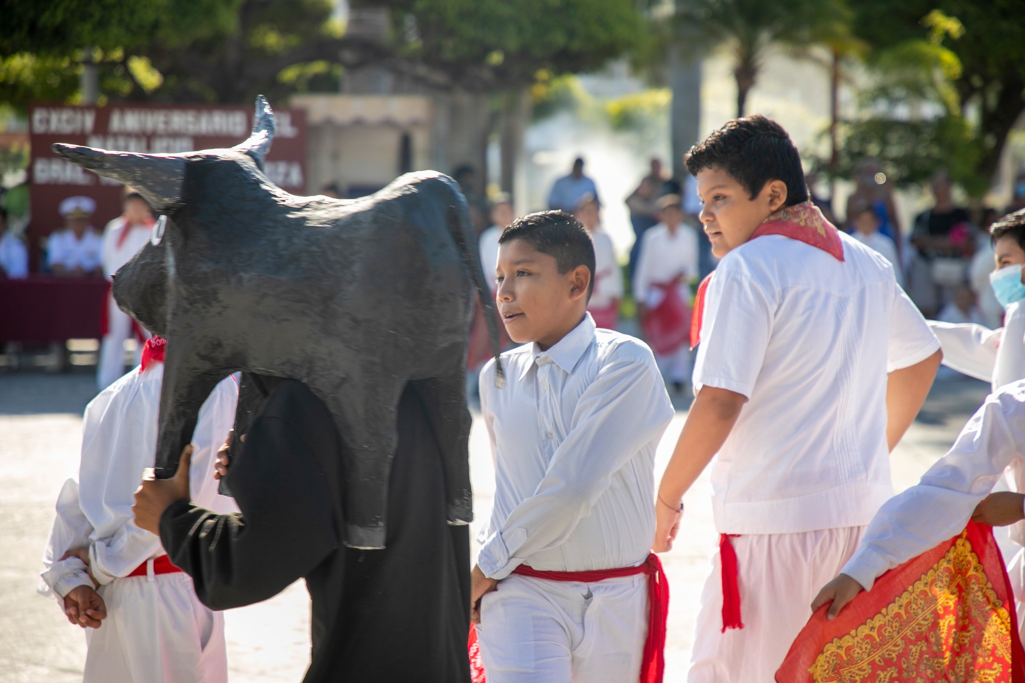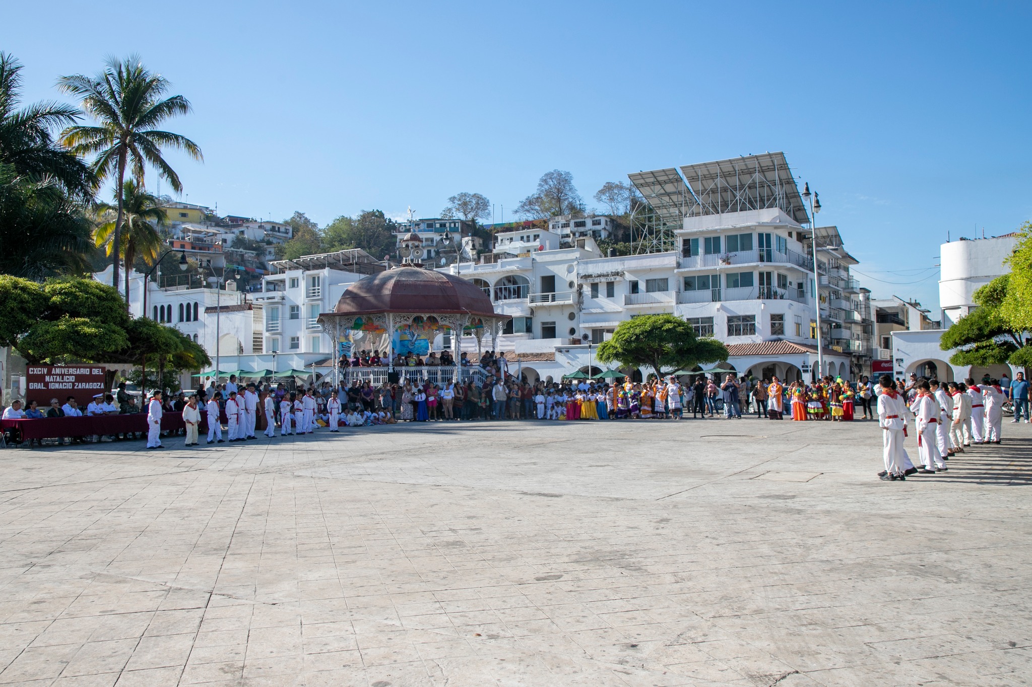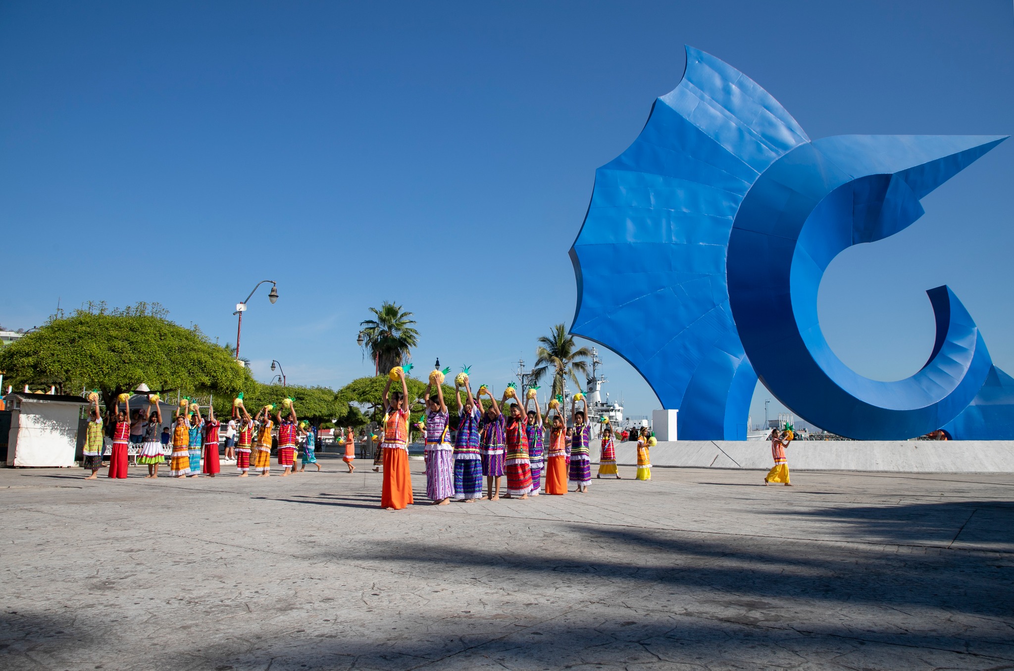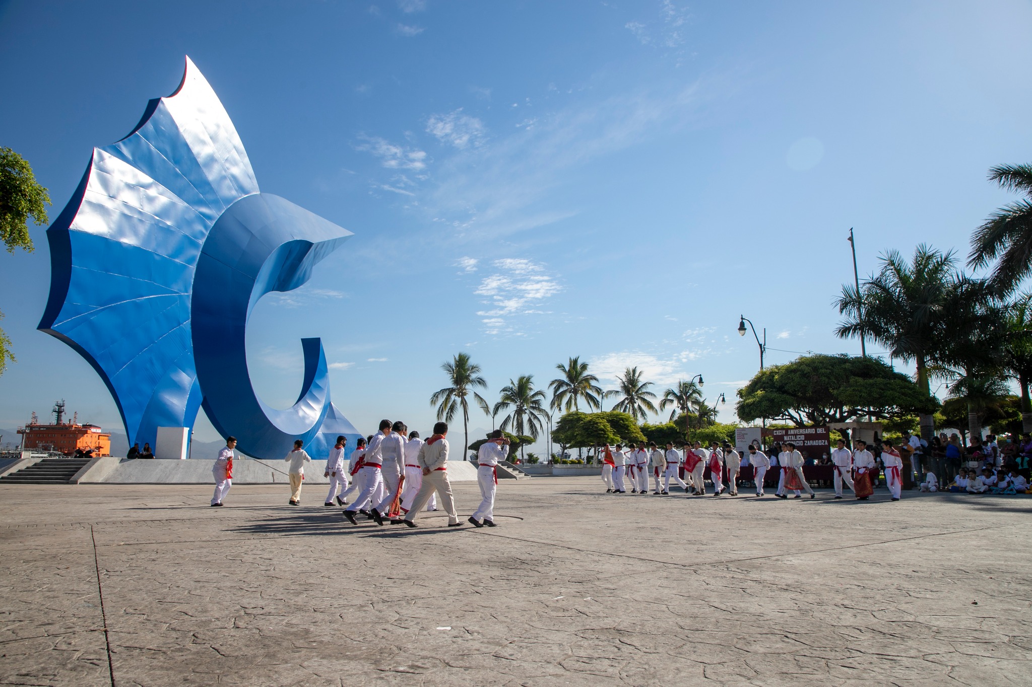 En esta ceremonia participaron autoridades civiles y militares, quienes presenciaron diversos bailables de las alumnas y alumnos de distintos grados de la escuela primera Ignacio Zaragoza, convocadas y convocados en la explanada del Pez Vela, dentro del corazón de Manzanillo.