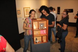 También participó en la apertura la artista visual Azucena Ibarra, quien habló de la memoria, que es elemental para las y los artistas, “sobre todo al considerar los factores que nos anclan como seres humanos, y creo que Nayeli lo hace muy bien a través de un proceso de bordar, de incidir, de generar, construir una incisión, una memoria, un doblez, un molde y todo lo que nos lleva a entender una narrativa de una historia personal de amor y desamor, de movimiento, de traslado y de adaptación”.