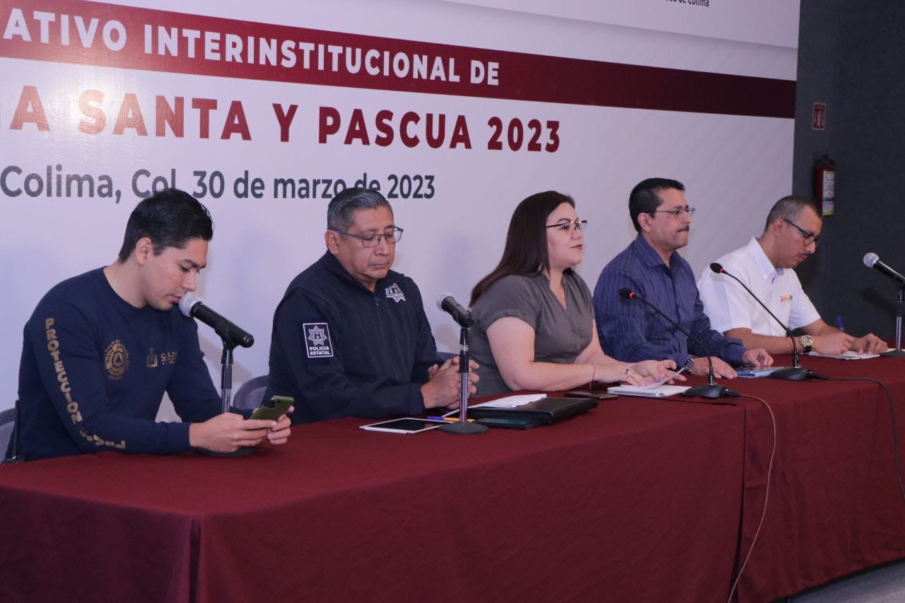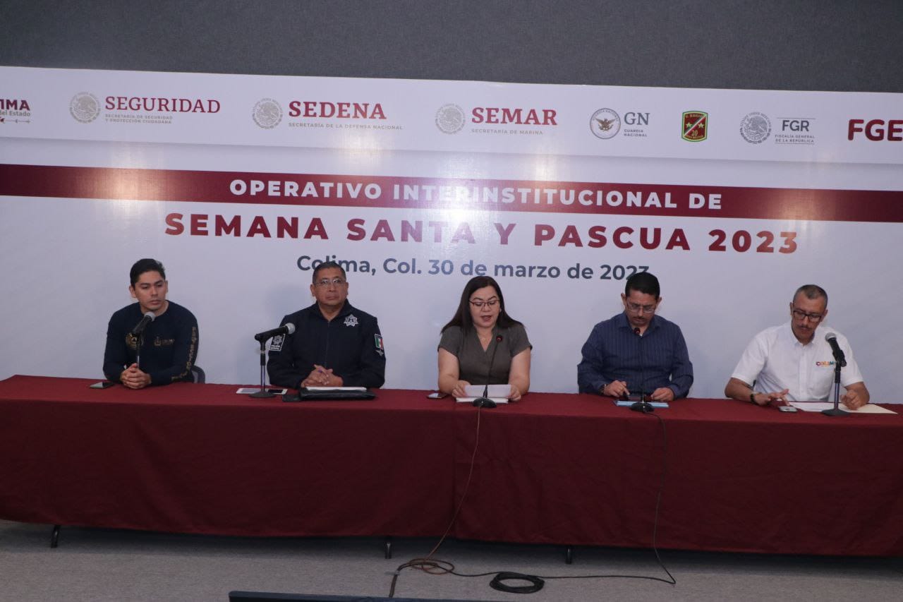 A través de la Mesa de Coordinación Estatal para la Construcción de la Paz y la Seguridad en Colima, se dio a conocer en rueda de prensa este jueves, el Operativo Inter-institucional de Semana Santa y Pascua 2023, donde la secretaria general de Gobierno, Ma. Guadalupe Solís Ramírez, expresó que los objetivos principales son: tener saldo blanco, y que turistas sean atendidos y acompañados en cualquier necesidad; “es prioridad que no tengamos pérdida de vidas de la gente que aprovecha estos días para vacacionar”.