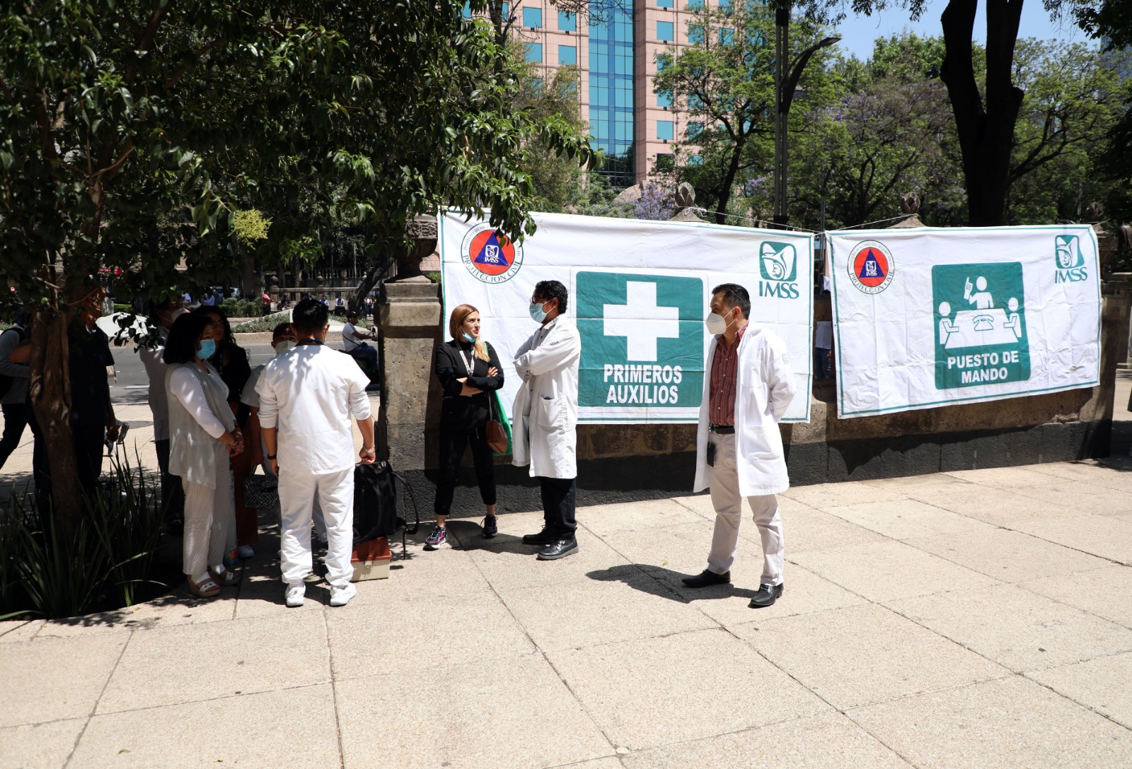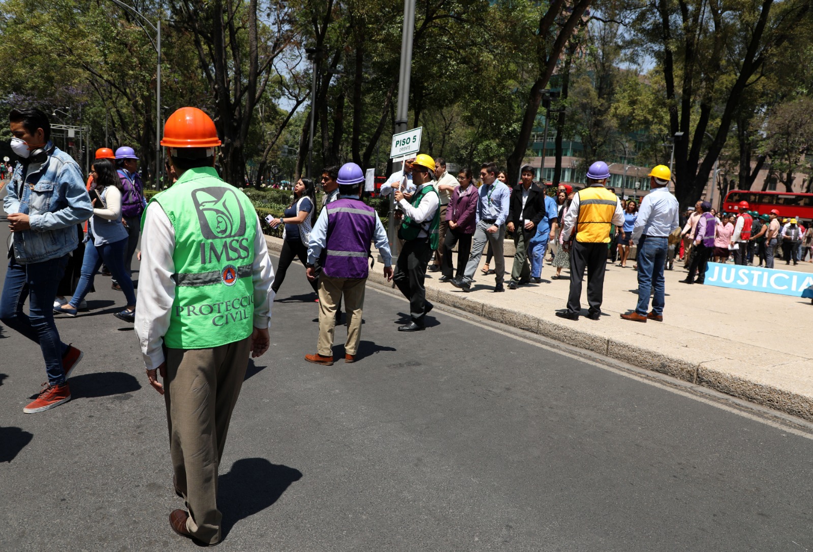 - En el conjunto Reforma-Tokio-Toledo del Seguro Social en la Ciudad de México, evacuaron mil 200 trabajadores en siete minutos; el secretario general, Marcos Bucio, recibió el parte de este ejercicio cívico.