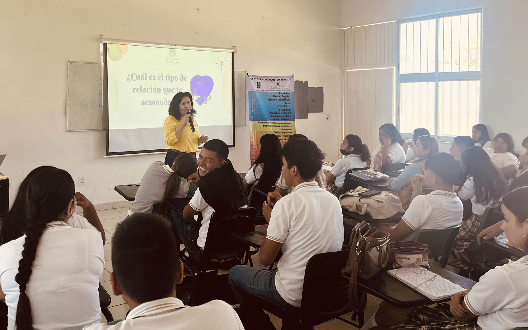 Como parte de las acciones preventivas que realiza la Unidad para la Atención Integral a la Discriminación y la Violencia de Género, todos los martes del semestre en curso se está impartiendo la charla: “Prevención de la violencia en el noviazgo”, a estudiantes de distintos bachilleratos de la Universidad de Colima.