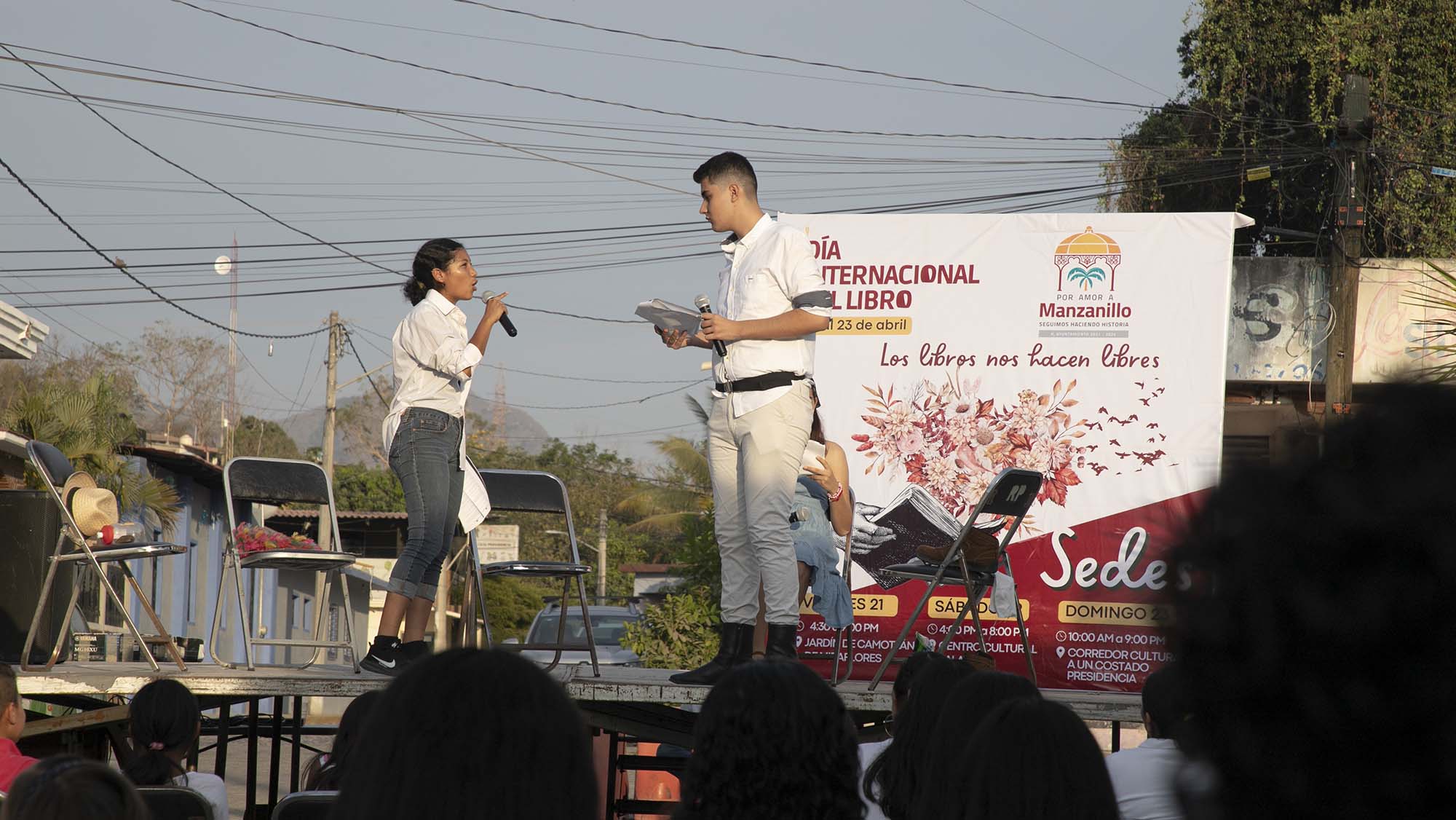 Esta jornada cultural inició con la lectura del escritor Rogelio Silva Cerna. Se presentó la lectura dramatizada: “Alicia en el País de las maravillas” de Lewis Carroll, con los jóvenes e infantes de taller Círculos Creativos de la Casa Hogar “Liborio Espinoza” y el tallerista Carlos Giffard. Alumnos de CET del Mar realizaron la lectura dramatizada “Mago de Oz” de L. Frank Baum, con el tallerista César Anguiano Silva.