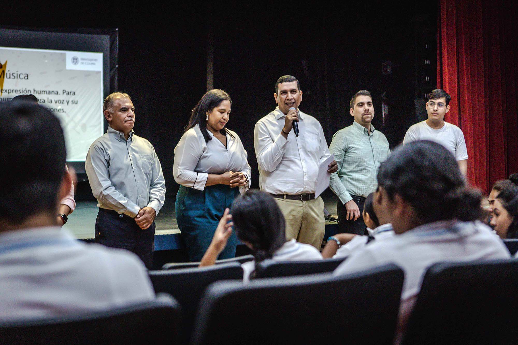 El presidente de la Federación de estudiantes Colimenses (FEC), Camilo García Morales, invitó a los y las estudiantes allí reunidos a disfrutar y aprovechar esta jornada, “que seguramente sembrará una semillita de cultura en cada uno. Quiero hacer énfasis, además, en la importancia de respetar y valorar el tiempo y el conocimiento que les van a compartir el día de hoy los maestros y artistas que se van a presentar, ya que son parte de una formación académica integral en sus estudios de bachillerato”.