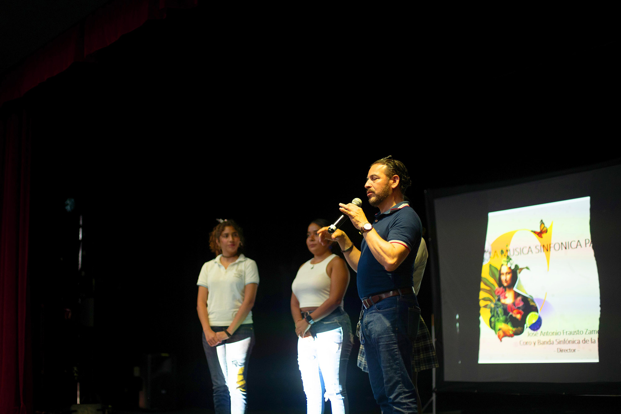 En la bienvenida, Jorge Alejandro Farías López, director de este plantel, señaló que una de las razones para iniciar el proyecto fue lo retirado que está el bachillerato de la mancha urbana (junto al ISENCO), dificultando para muchos jóvenes acudir a los eventos culturales; “en este sentido, hicimos la gestión con la directora de Difusión Cultural, a quien solicitamos abrir las puertas de este recinto al alumnado y realizar la jornada con artistas del Programa de Apreciación Artística”.