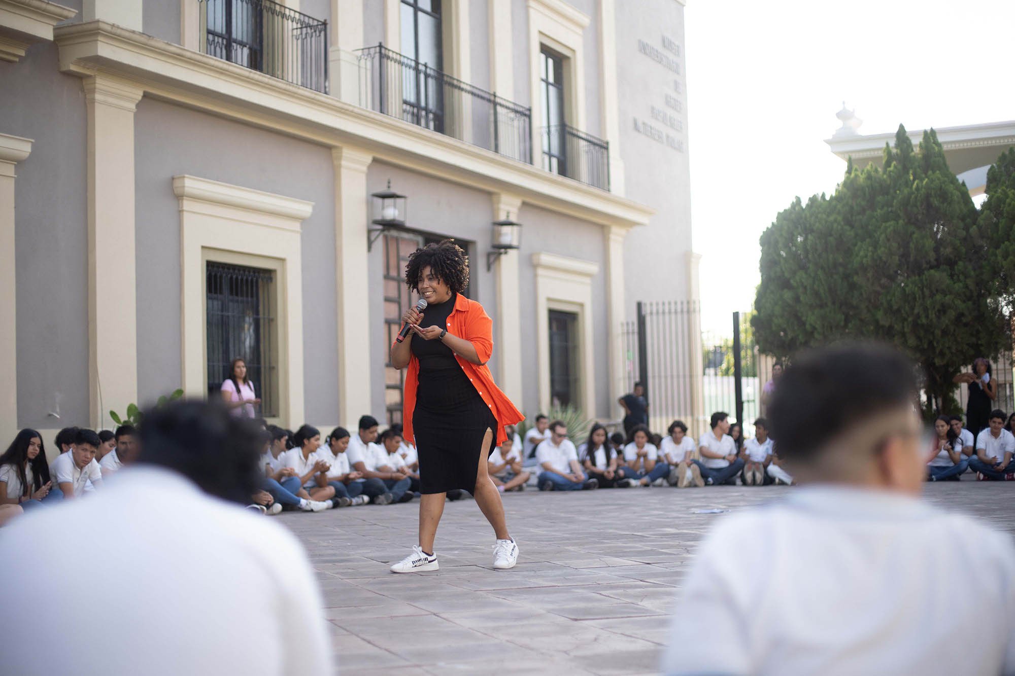 Tras un pequeño receso, las actividades continuaron de la mano de la psicóloga Leydis Rodríguez y la actriz Carmen Solorio, quienes realizaron con los estudiantes una intervención multidisciplinaria titulada “Buscando un sueño”, en la que se conjuntaron el teatro y la psicología.