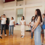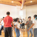 Más adelante, los directores de la Compañía Univerdanza, Adriana León y Alejandro Vera recibieron a los estudiantes en el Salón Guillermina Bravo del Departamento de Música, donde trabajaron con ellos y ellas el “Laboratorio performance DANZA Y HUMANIDAD”. Al final, 40 voluntarios de este plantel participaron en un ejercicio coreográfico guiado por estos maestros y bailarines universitarios.