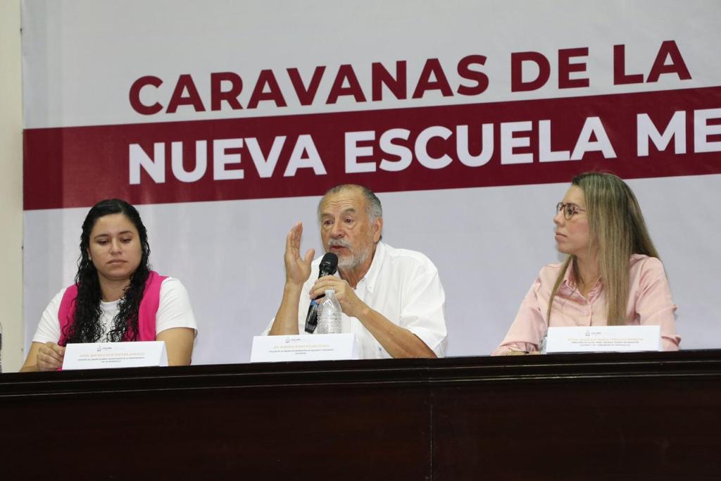 El funcionario sostuvo que el plan de estudios muestra su definición humanista y filosófica en los campos del saber que atenderá, como: lenguaje, saberes y pensamiento científico, ética, naturaleza, sociedad y de lo humano a lo comunitario, un nuevo paradigma que deja atrás el modelo neoliberal; dijo que las actividades de esta caravana permitirán a maestras y maestros fortalecer el conocimiento de diversos enfoques pedagógicos y didácticos, para atender las necesidades de aprendizaje de alumnas y alumnos.