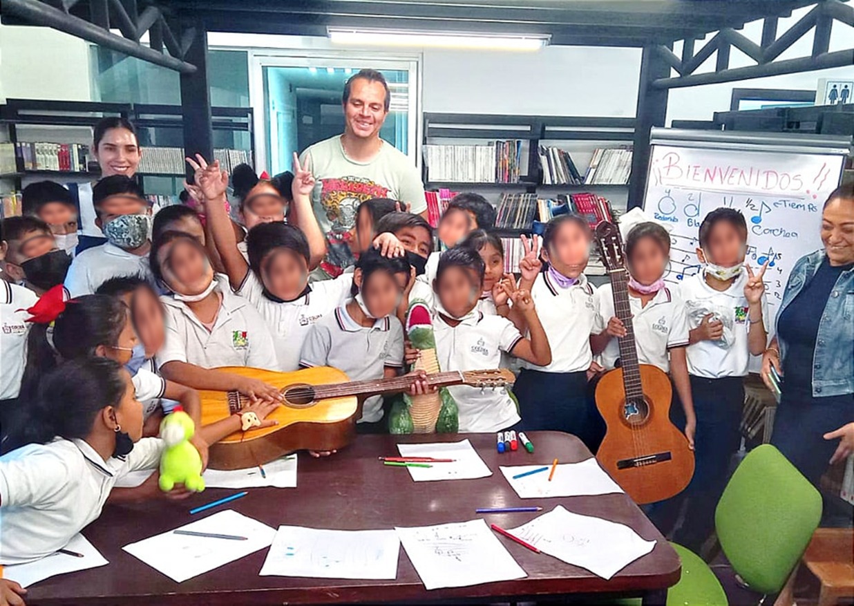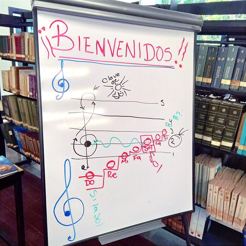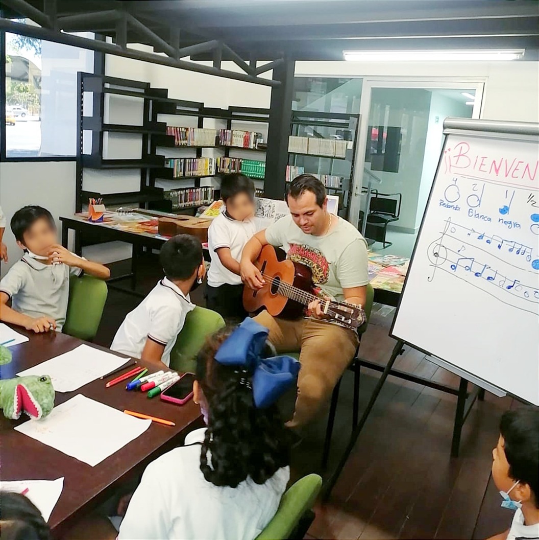 Estas actividades comenzaron el lunes 24 de abril y se siguen realizando en punto de las 11 de la mañana y concluirán el próximo viernes 28 de abril. Este miércoles fueron las alumnas y alumnos de nivel primaria de la escuela “Niños Héroes”, quienes tomaron clases de música con guitarra y además aprendieron las notas musicales con ritmos y solfeo.