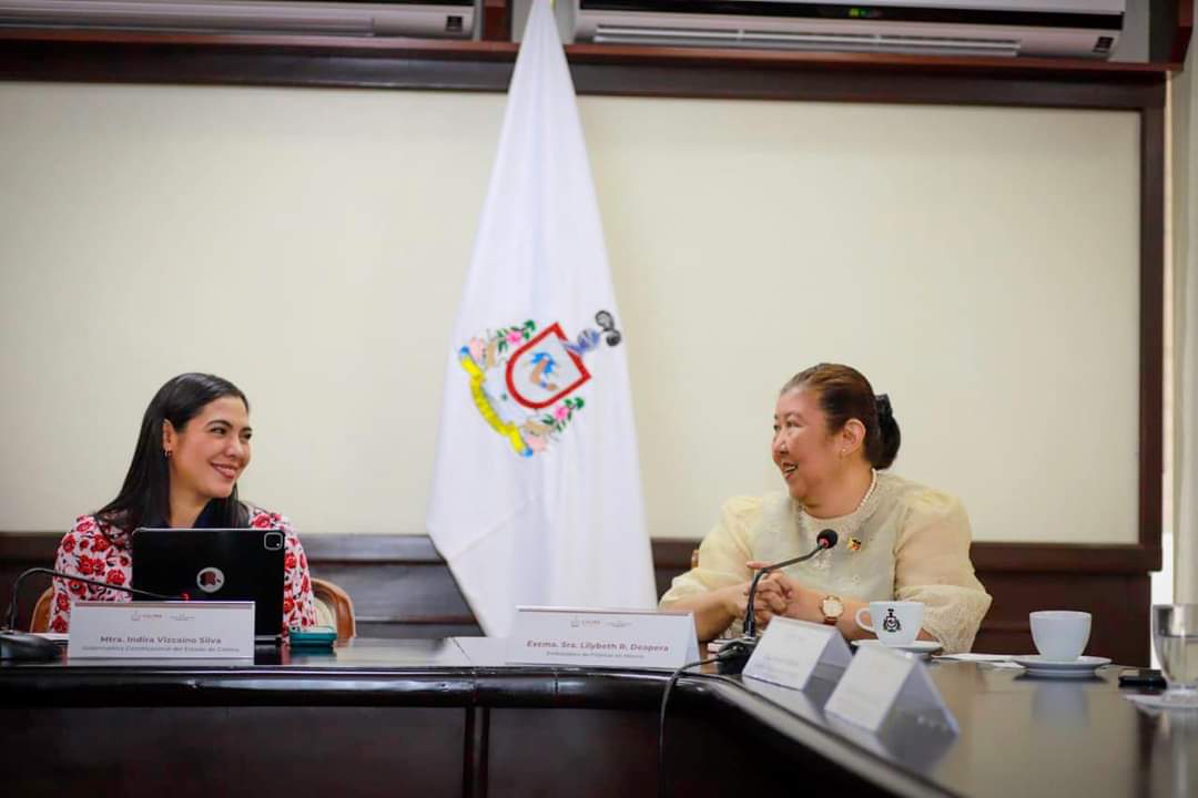 La gobernadora del Estado de Colima, Indira Vizcaíno Silva, recibió este jueves en Casa de Gobierno a la embajadora de Filipinas en México, Lilybeth R. Deapera, con quien dialogó con la finalidad de hermanar aún más los lazos entre Colima y Filipinas, país con el que históricamente ha habido un intercambio cultural muy relevante desde hace siglos; “nos da mucho gusto recibirles, para nosotros es primordial que estén en nuestro estado por diversas razones”.