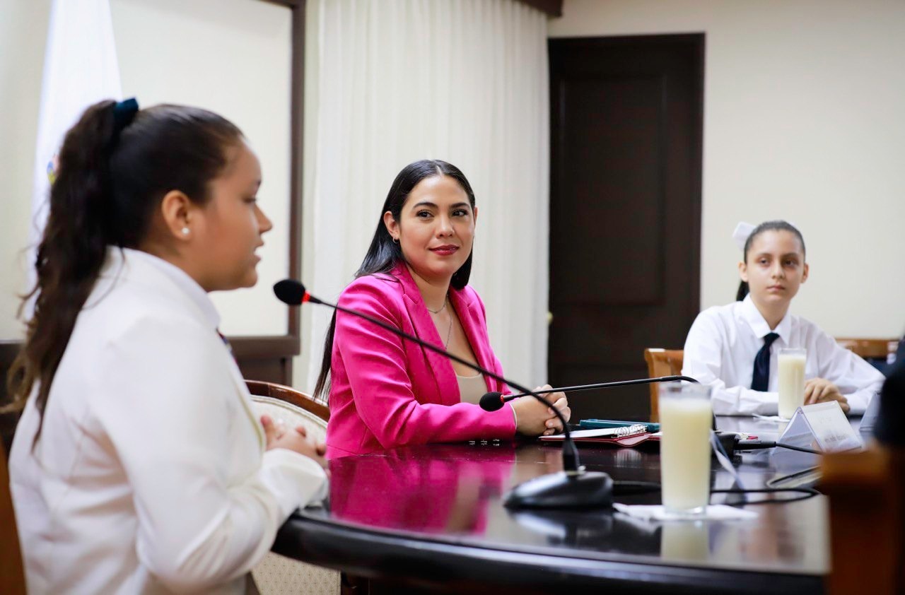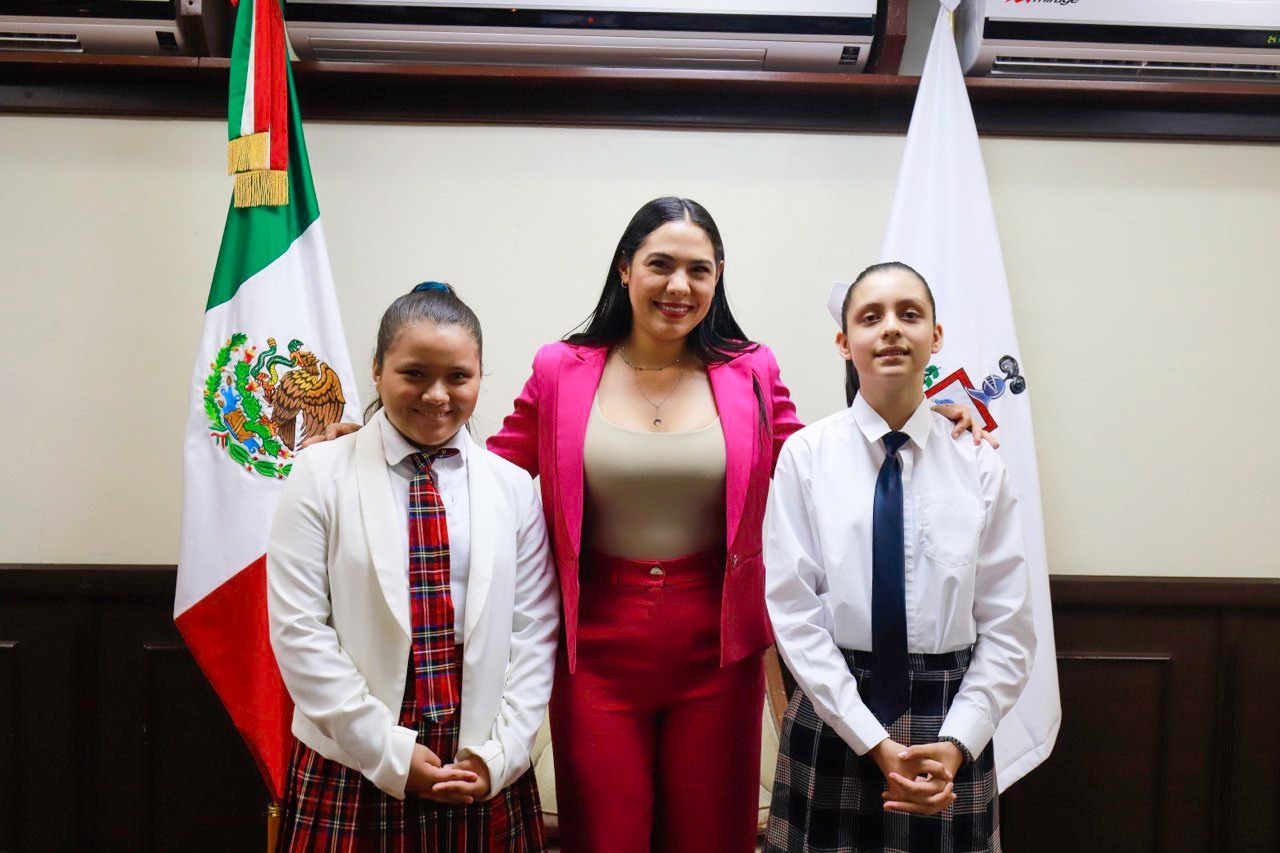 Indira recibe a Sofía Lizeth y Constanza Regina, representantes de Colima en Parlamento Nacional Infantil