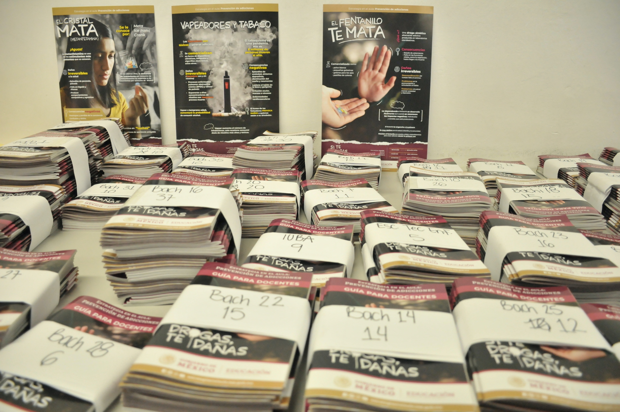 El material entregado a directivos de los bachilleratos universitarios, explicó el director general de Educación Media Superior, Martín Jesús Robles de Anda, consta de guías para docentes y carteles sobre el uso del fentanilo, los vapeadores, el tabaco y otras drogas, “que serán colocados en las aulas de los 37 bachilleratos que forman parte de nuestra institución, así como en las instituciones educativas que se encuentran afiliadas a la Universidad”.