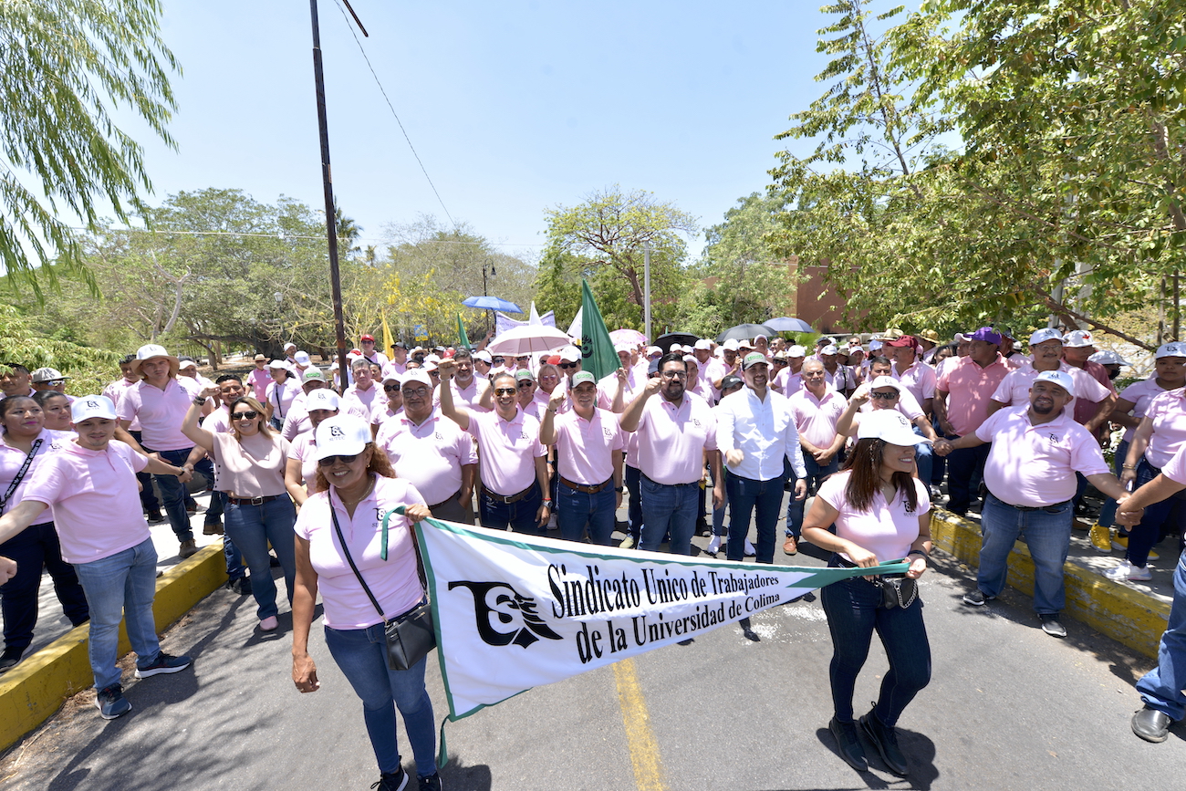 Este lunes, alrededor de 3 mil 300 trabajadores y trabajadoras de la Universidad de Colima, encabezados por el rector Christian Jorge Torres Ortiz Zermeño y Luis Enrique Zamorano Manríquez, secretario general del Sindicato Único de Trabajadores de la Universidad de Colima (SUTUC), participaron en el desfile por el Día del Trabajo junto con sindicatos, instituciones educativas del estado y dependencias gubernamentales.