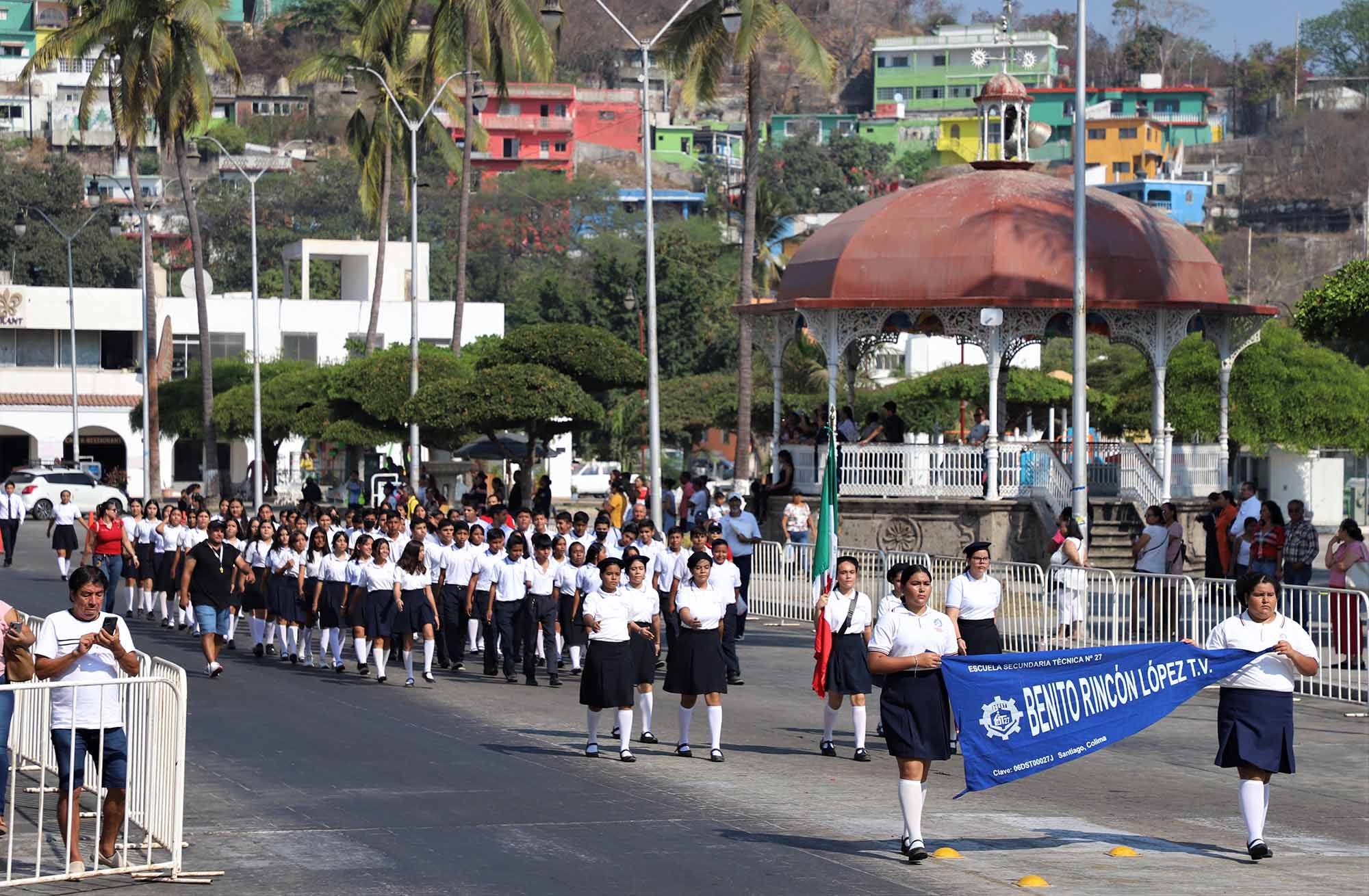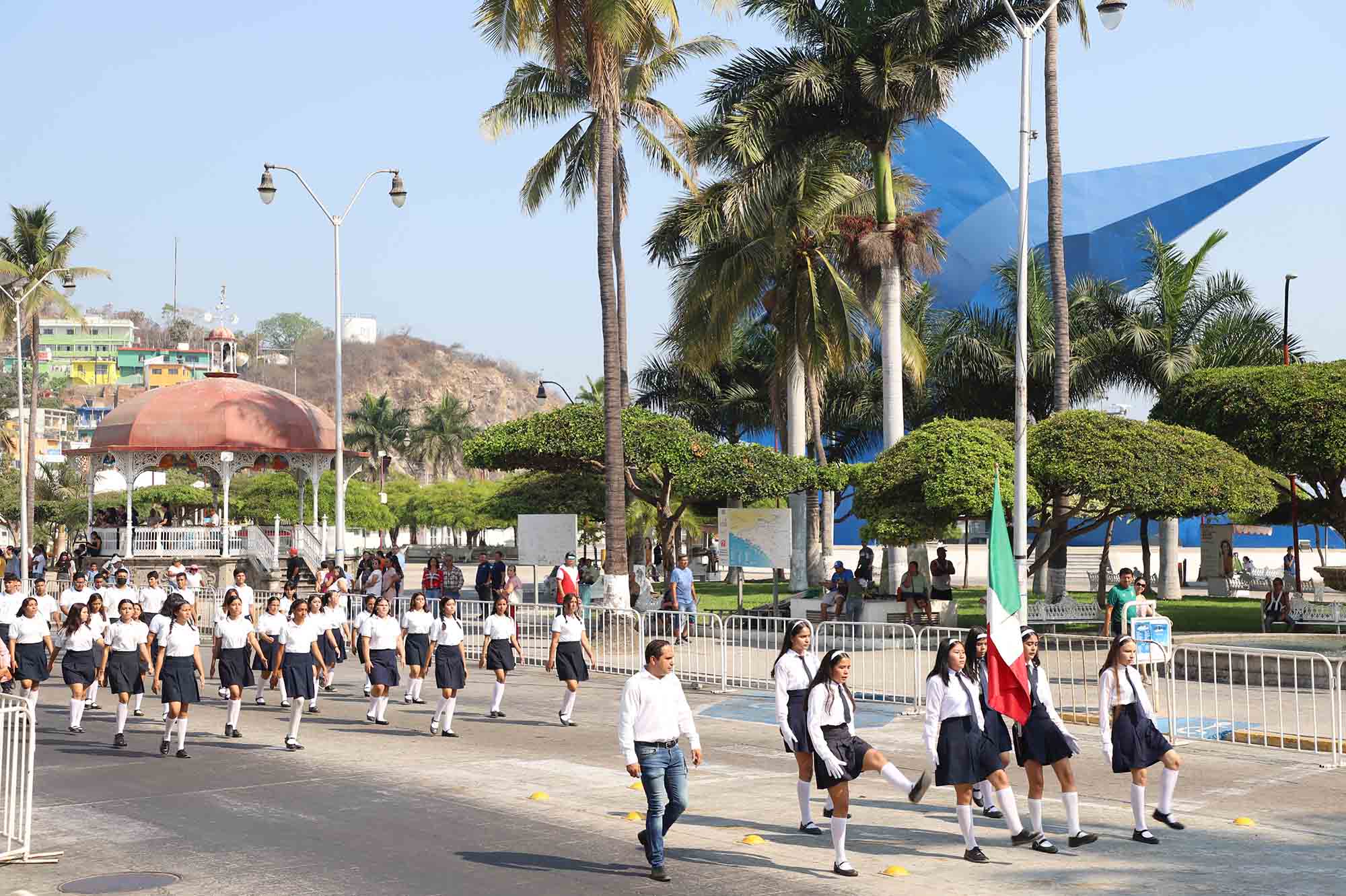 Con la participación de 16 contingentes de instituciones educativas y públicas, más de 2 mil personas desfilaron con motivo del 161 Aniversario de la Batalla de Puebla, acto organizado por el Ayuntamiento de Manzanillo en el que autoridades civiles y militares presenciaron a fuera de la Presidencia Municipal en el centro de la ciudad.