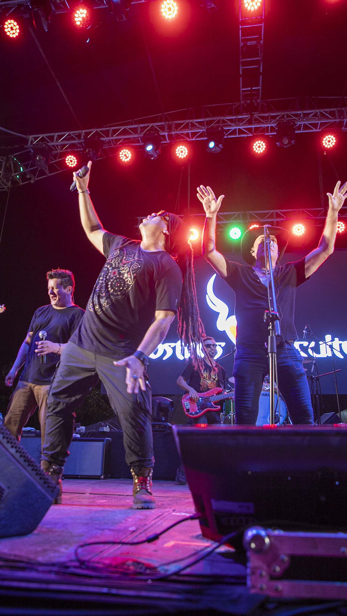 Previo al concierto estelar, la agrupación manzanillense Caída Libre, prendió al público con la interpretación de innumerables éxitos musicales de diferentes bandas de rock, ska y reggae, dejando en claro que el talento que tenemos en Manzanillo es mucho y de excelente calidad, sus fans llegaron muy temprano para disfrutar sus magníficas interpretaciones. Hermelinda Anguiano les entregó un merecido reconocimiento por su destacada participación.