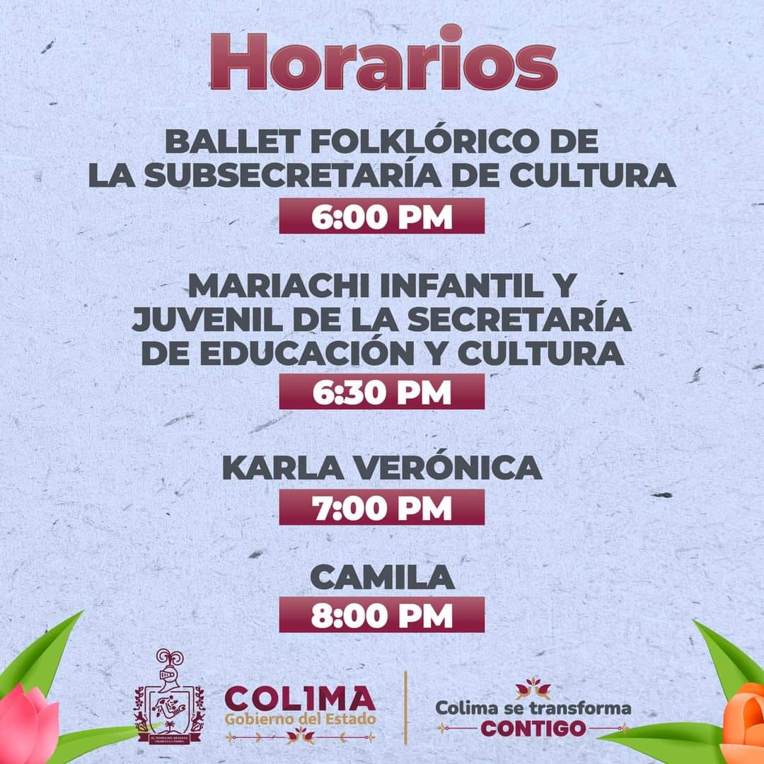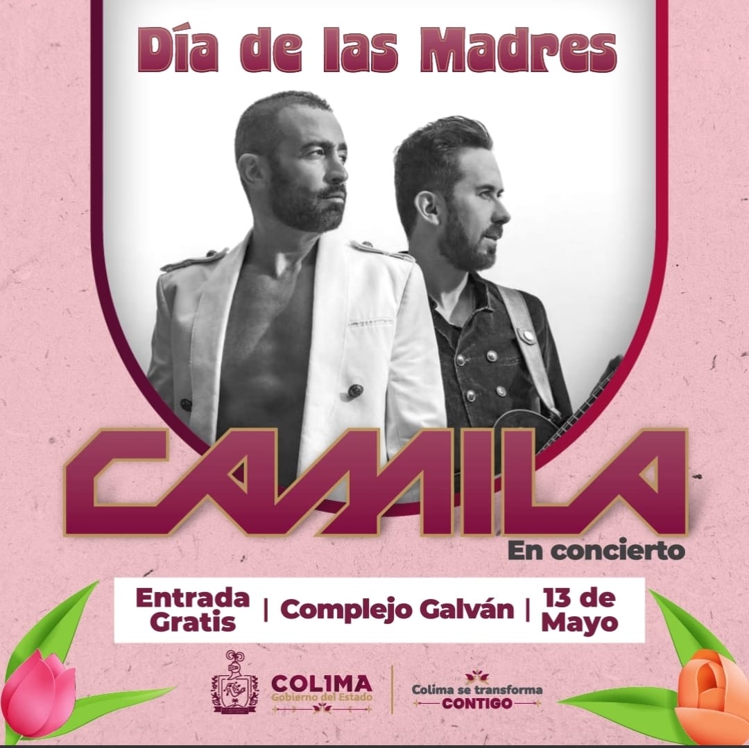 Es importante recordar que, aunque se trata de un concierto gratuito para celebrar a las mamás colimenses, pueden asistir personas de cualquier género y edad, para disfrutar la cartelera musical que iniciará a las 6 de la tarde con la presentación del Ballet Folklórico de la Subsecretaría de Cultura, luego el Mariachi Infantil y Juvenil de la Secretaría de Educación y Cultura, para continuar con la cantante colimense Karla Verónica y finalmente la presentación estelar del grupo Camila.