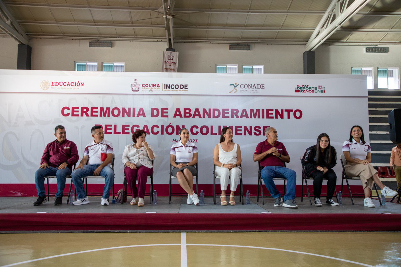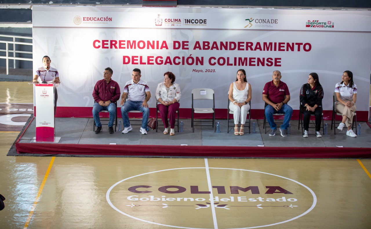 La Gobernadora de Colima, Indira Vizcaíno Silva, abanderó en el auditorio “Porfirio Gutiérrez Romero” de la Unidad Deportiva José María y Morelos, a la delegación colimense que representará a la entidad con 359 deportistas en 24 disciplinas deportivas en su participación en los Nacionales Conade 2023, a efectuarse en Tabasco, Aguascalientes, Morelos, Nayarit y Jalisco, del 19 de mayo al 25 de julio.