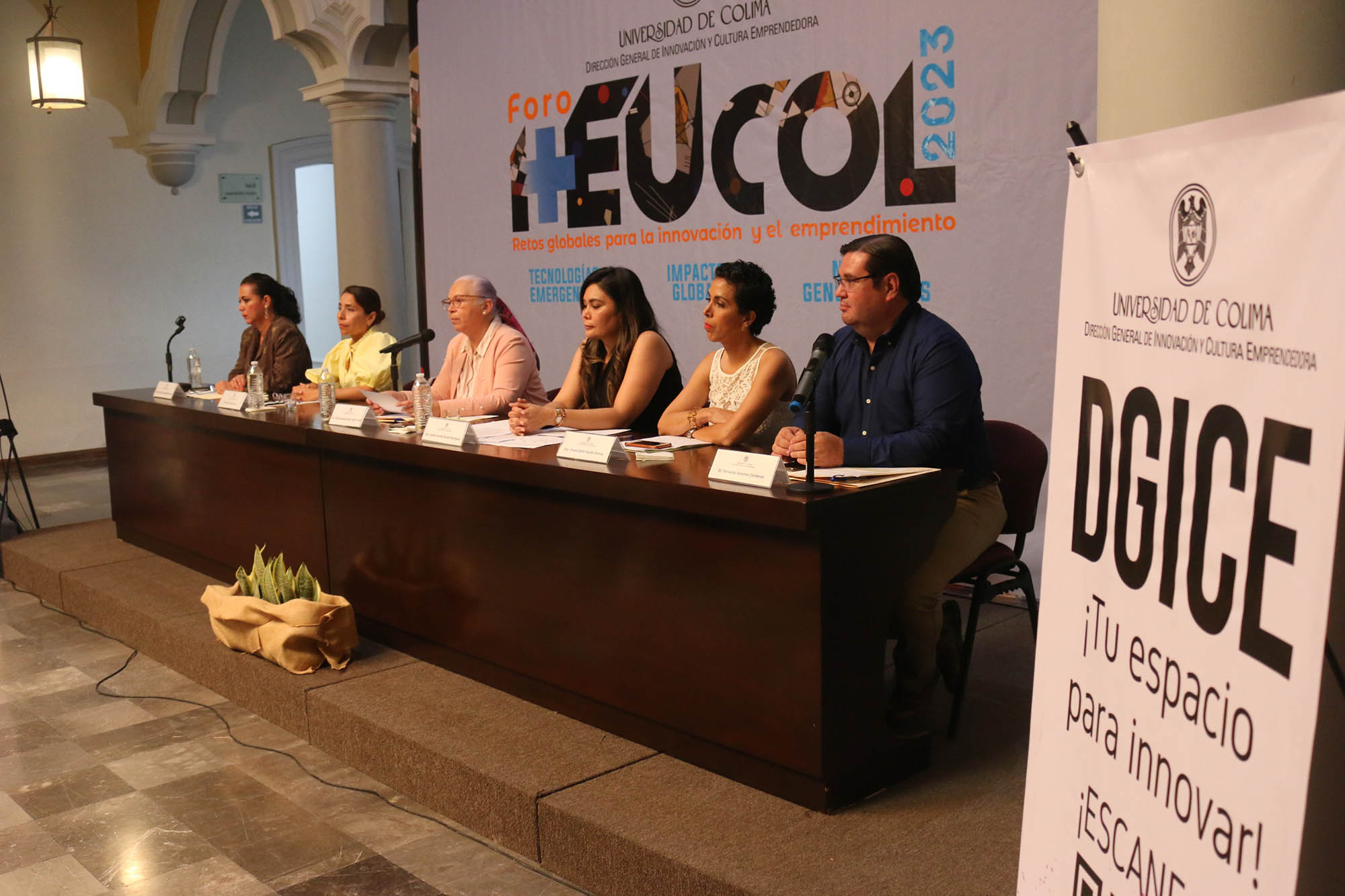 Este miércoles, en la Pinacoteca Universitaria, se realizó el panel de investigadoras sobre retos globales para la innovación y el emprendimiento, con el que concluyeron las actividades el Foro i+EUcol 202 que organizan la Dirección General de Innovación y Cultura Emprendedora y las coordinaciones generales de Investigación, Docencia y Extensión de la Universidad de Colima.