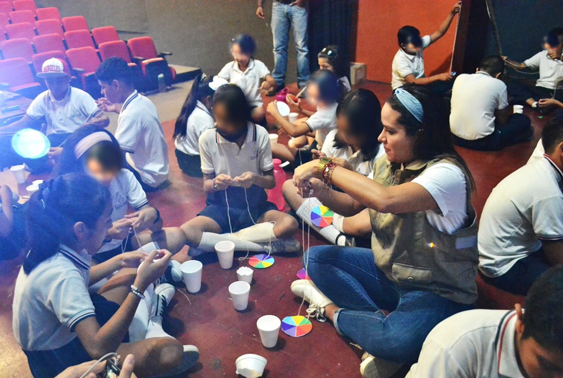 En el Poliforum Cutural Mexiac del jardín Corregidora en la capital colimense, se reunieron docentes y alumnado del jardín de niños Ignacio Manuel Altamirano, la escuela primaria Libro de Texto Gratuito (ambos turnos) y la secundaria Enrique Corona Morfín (ambos turnos), para que toda la semana puedan participar en conferencias educativas, experimentos científicos, juegos y otras actividades lúdicas, con las que se generarán reflexiones y análisis sobre la ciencia lumínica.