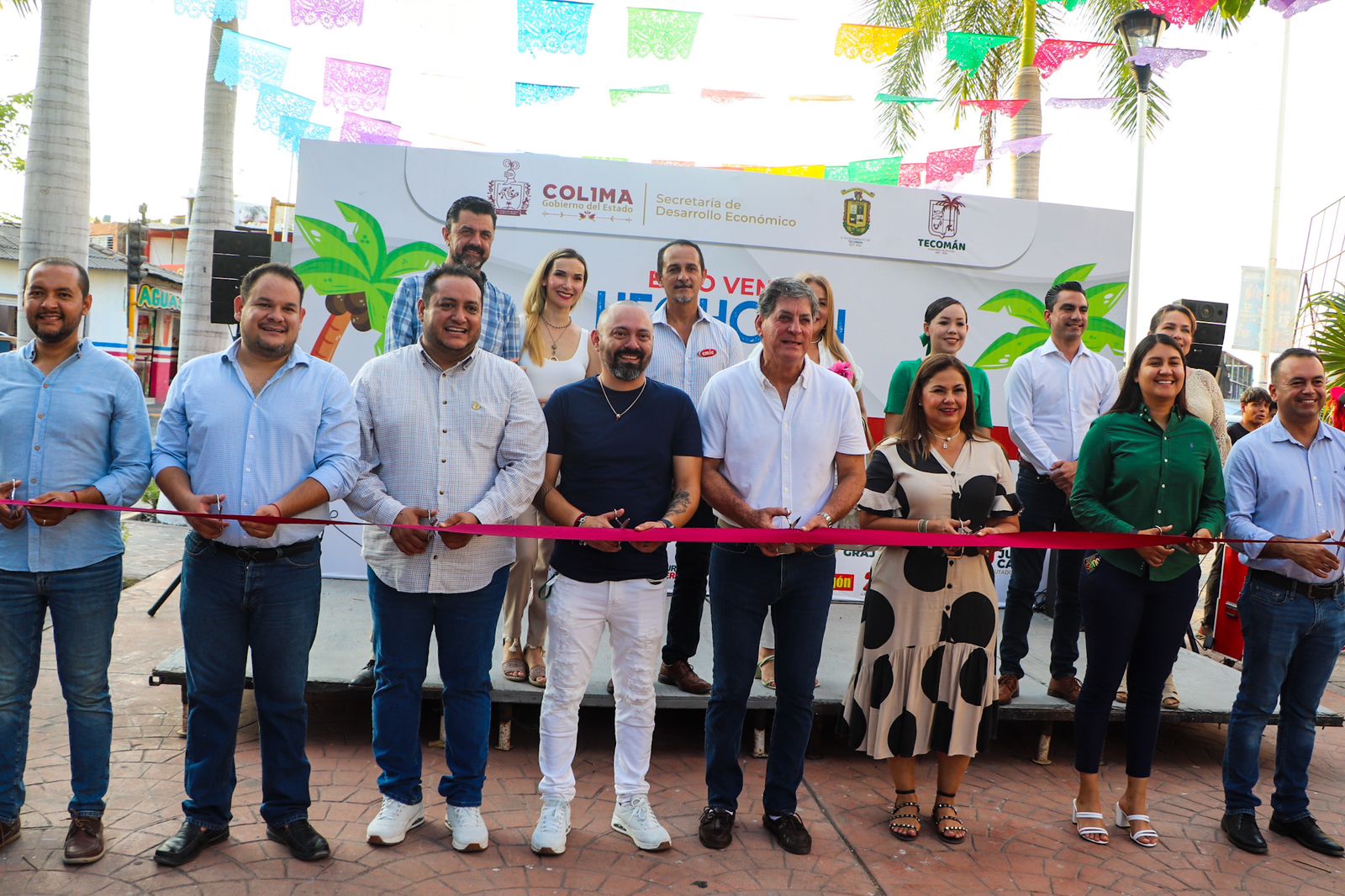 Con buenos augurios comenzó la primera Expo-venta Hecho en Colima en Tecomán, organizada por la Secretaría de Desarrollo Económico (Sedeco) del Gobierno del Estado de Colima, ante una nutrida asistencia, donde autoridades estatales, municipales, diputados y líderes empresariales cortaron el listón inaugural de este evento que se desarrolla del 25 al 27 de mayo.