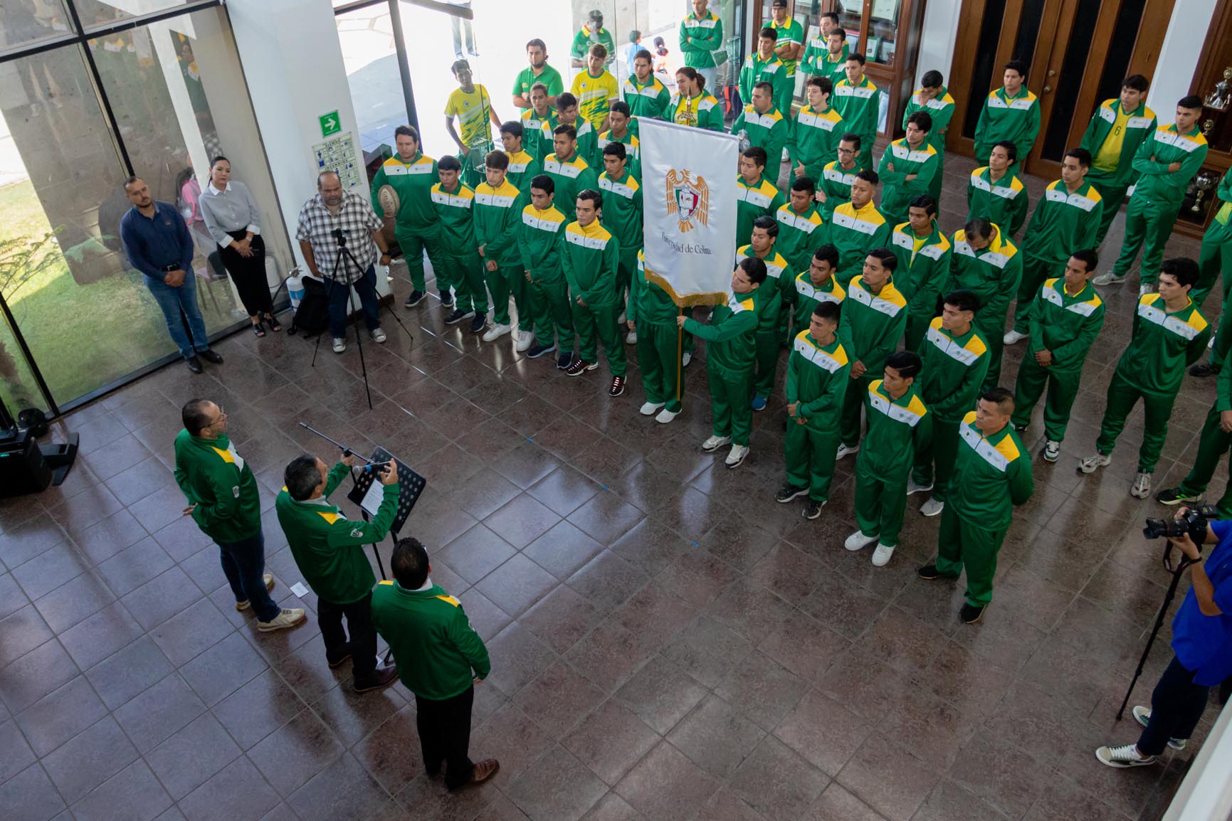 El rector Christian Torres Ortiz Zermeño encabezó la ceremonia de abanderamiento formal de la delegación universitaria que acudirá a la Universiada Nacional 2023, del 29 de mayo al 15 de junio en la ciudad de Hermosillo, Sonora, en ceremonia realizada en el vestíbulo de rectoría.