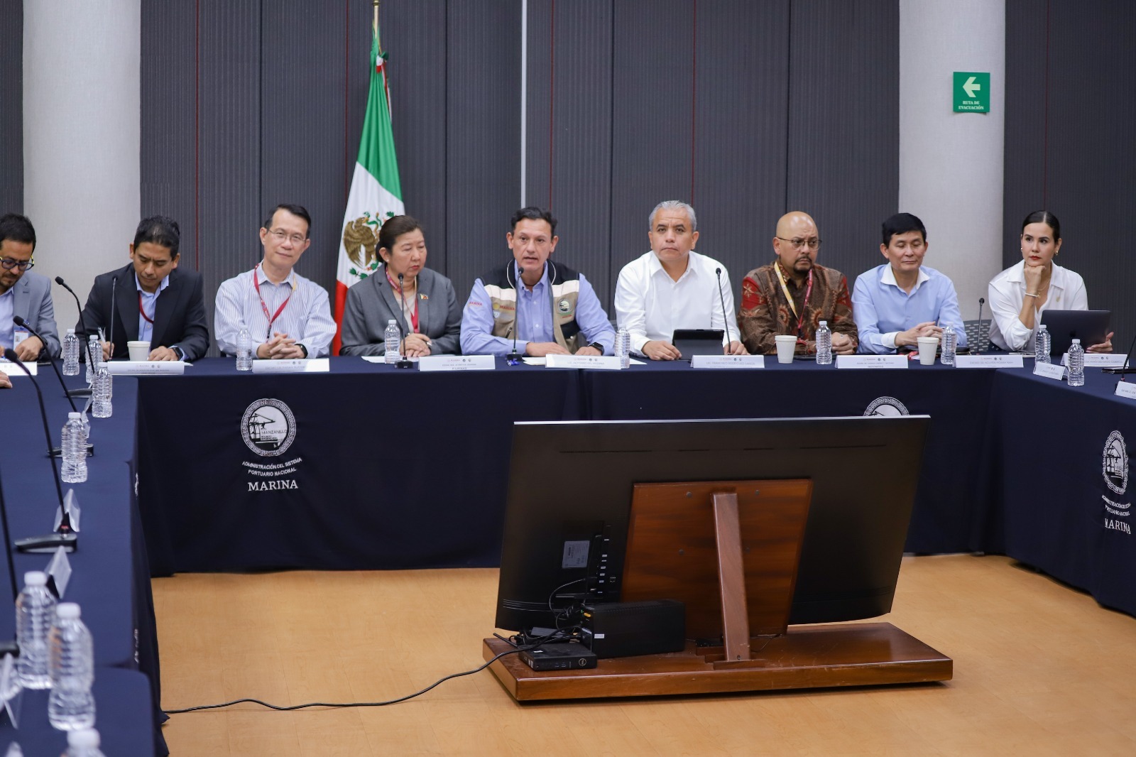 La embajadora de Filipinas y los embajadores de Indonesia, Malasia, Tailandia y Vietnam, atendieron la tarde de este martes la invitación del almirante Salvador Gómez Meillón, titular de la Administración del Sistema Portuario Nacional en Manzanillo, donde sostuvieron una reunión en la que estuvieron el gerente jurídico de Asipona, Alfonso Gil Medina; el secretario de Desarrollo Económico del Gobierno del Estado de Colima, Francisco Javier Rodríguez García, y representantes de empresas transportistas, agencias navieras, recintos fiscalizados estratégicos, asociaciones de importadores y exportadores, patios externos, agentes aduanales y operadores logísticos.