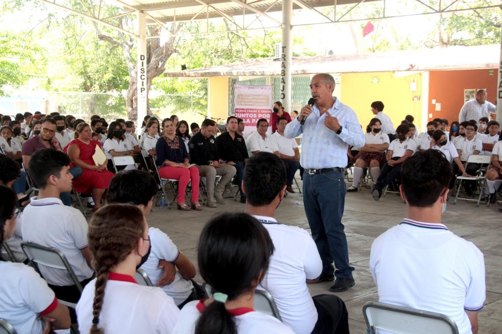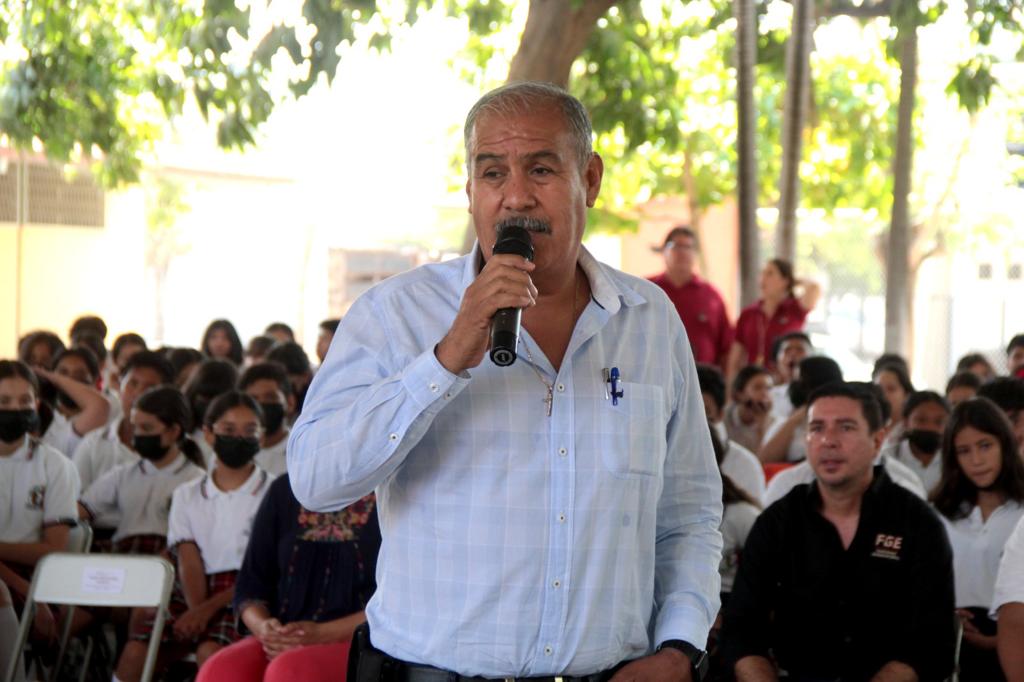 El secretario de Educación y Cultura, Adolfo Núñez González, impartió una charla de sensibilización a estudiantes de la Escuela Secundaria No. 13, “Miguel Virgen Morfín” en Villa de Álvarez, con el propósito de motivarlos para seguir sus sueños y lograr sus metas como parte de la estrategia estatal “Vamos todas y todos juntos por la paz” que impulsa la gobernadora de Colima, Indira Vizcaíno Silva.