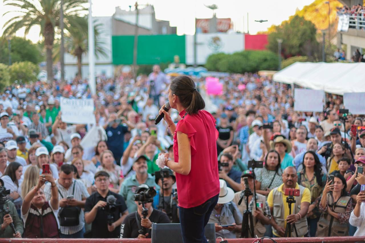 Sheinbaum Pardo enlistó como parte de las razones por las que debe continuar la llamada 4T una gran cantidad de políticas públicas, programas sociales y proyectos impulsados por el presidente como es el caso de el Plan Sonora, con el cual la entidad tiene la planta solar más grande de América Latina, la nacionalización del Litio,la pensión para adultos mayores, entre muchos otros que tienen la finalidad de generar bienestar para todas las mexicanas y los mexicanos.