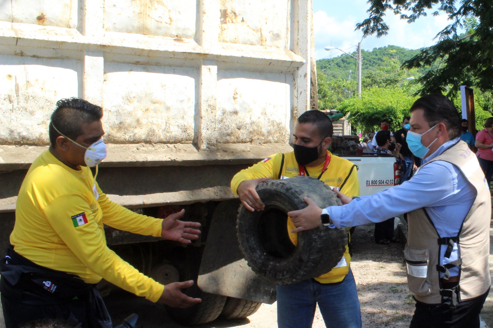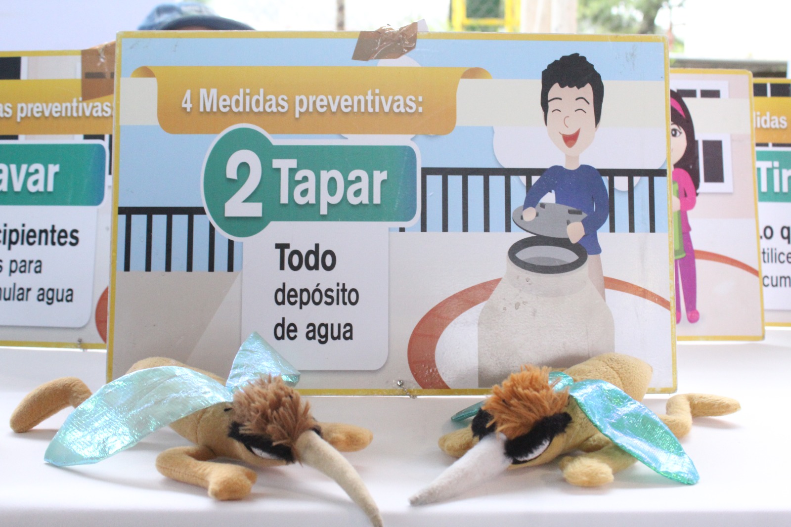 Igualmente, lavar recipientes como tinacos, piletas, cubetas, floreros, bebederos de animales y cualquier recipiente que pueda servir para que se acumule agua; tapar los recipientes donde se almacena agua para uso doméstico y tirar botellas, llantas, latas o trastes que ya no se utilizan, porque pueden acumular agua y convertirse en criaderos del mosco transmisor.