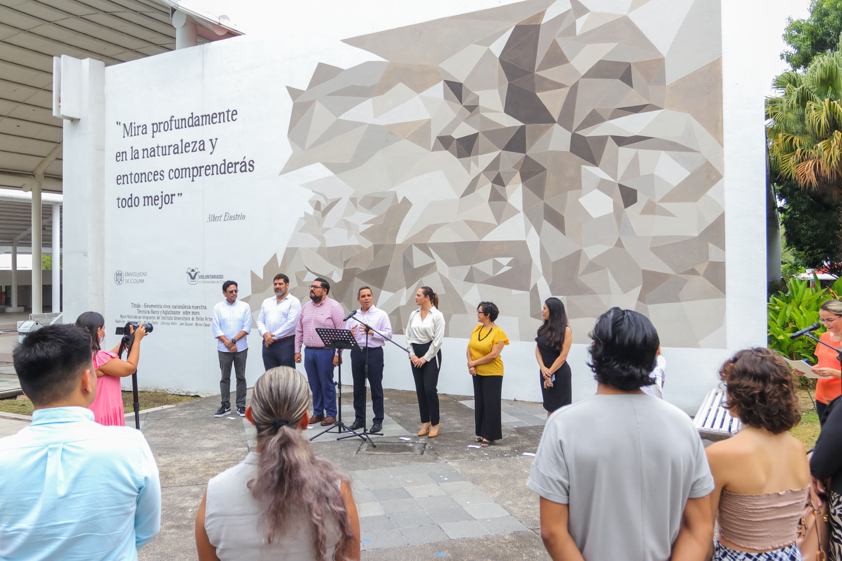 Con la presencia del rector Christian Torres Ortiz Zermeño y Blanca Liliana Díaz Vázquez, presidenta del Voluntariado de la Universidad de Colima, se inauguró este viernes el mural “Geometría viva, naturaleza nuestra”, que elaboraron seis alumnos y una maestra de la Escuela de Artes Visuales de esta casa de estudios. El mural se ubica en la explanada del Auditorio “Carlos de la Madrid Virgen” de la Facultad de Contabilidad y Administración Colima.