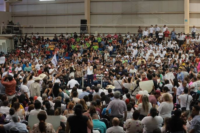 +’El presidente gobierna con honestidad, con honradez, todo lo ha hecho sin aumentar impuestos, sin endeudar al país y podemos seguir’’, destacó Claudia Sheinbaum frente a militantes y simpatizantes neoloneses