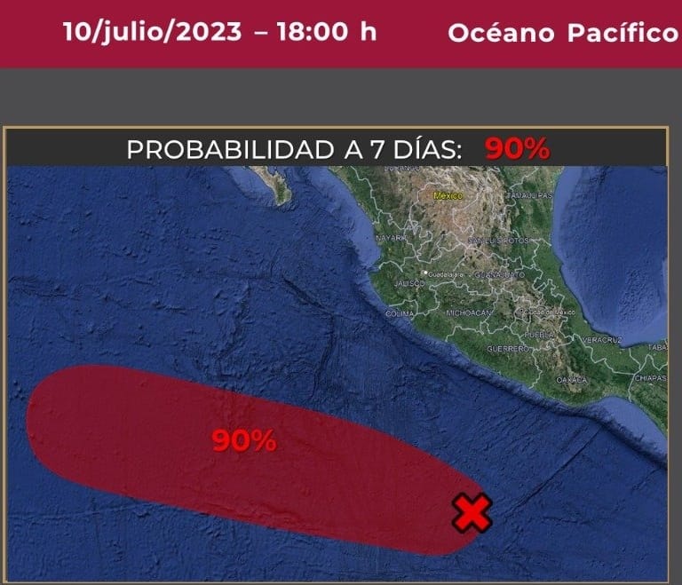 La Unidad Estatal de Protección Civil (UEPC) del Gobierno del Estado de Colima, mantiene en vigilancia una zona de baja presión con probabilidad de desarrollo ciclónico que se ubica en el Pacífico Centro -al sur de Michoacán-, que generará lluvias puntuales intensas en dicha entidad y Guerrero, así como muy fuertes en Colima, Jalisco, Sonora, Chihuahua, Sinaloa, Nayarit, Guanajuato, Estado de México, Morelos y Puebla.