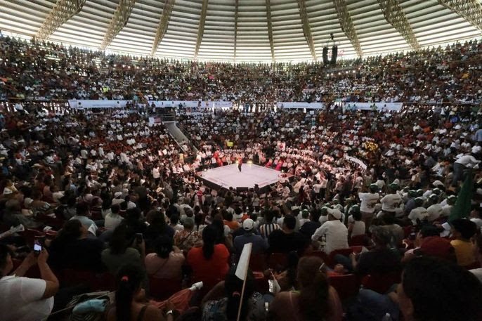 ‘’Allá del otro lado está el pasado, con la Cuarta Transformación y su continuidad es el futuro del bienestar del pueblo de México … allá es la oscuridad, la noche, el pasado, allá son los privilegios, allá es la corrupción, aquí es la esperanza del pueblo de México, de seguir construyendo su destino, sus sueños, el anhelo de hombres y mujeres mexicanas que todos los días construyen su patria’’, añadió.