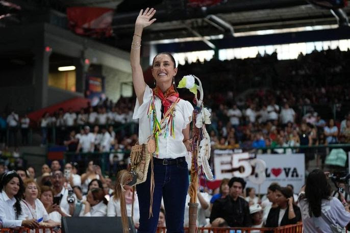 Claudia Sheinbaum fue recibida con el afecto de los pueblos originarios de la entidad; comunidades yoremes le hicieron entrega del Bastón de Mando y realizaron un ritual sagrado para acompañarla en su camino por la República Mexicana, ‘’te entregamos la llave de nuestro corazón. Estamos contigo Claudia’’.