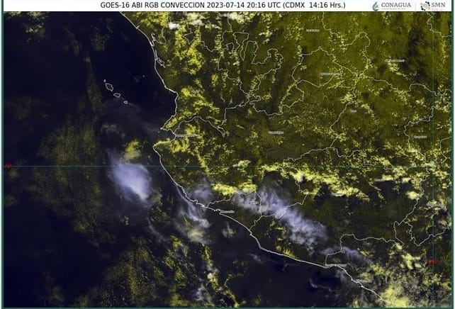 La Conagua estima que en el Pacífico Centro se estará registrando este sábado cielo medio nublado a nublado con lluvias puntuales fuertes en Nayarit y Jalisco; las cuales podrían incrementar los niveles de ríos y arroyos, y generar deslaves e inundaciones; además de chubascos en Colima y Michoacán.